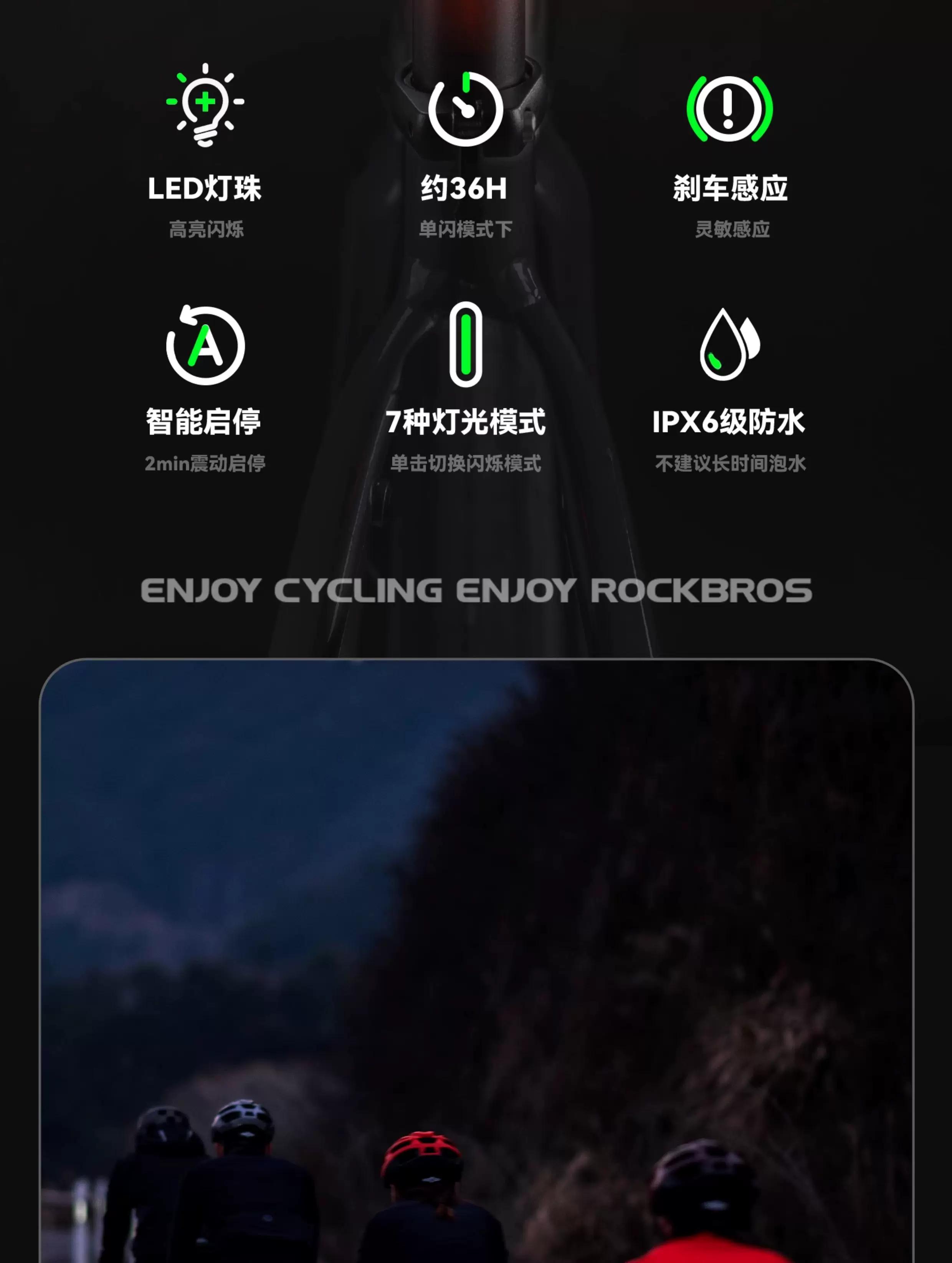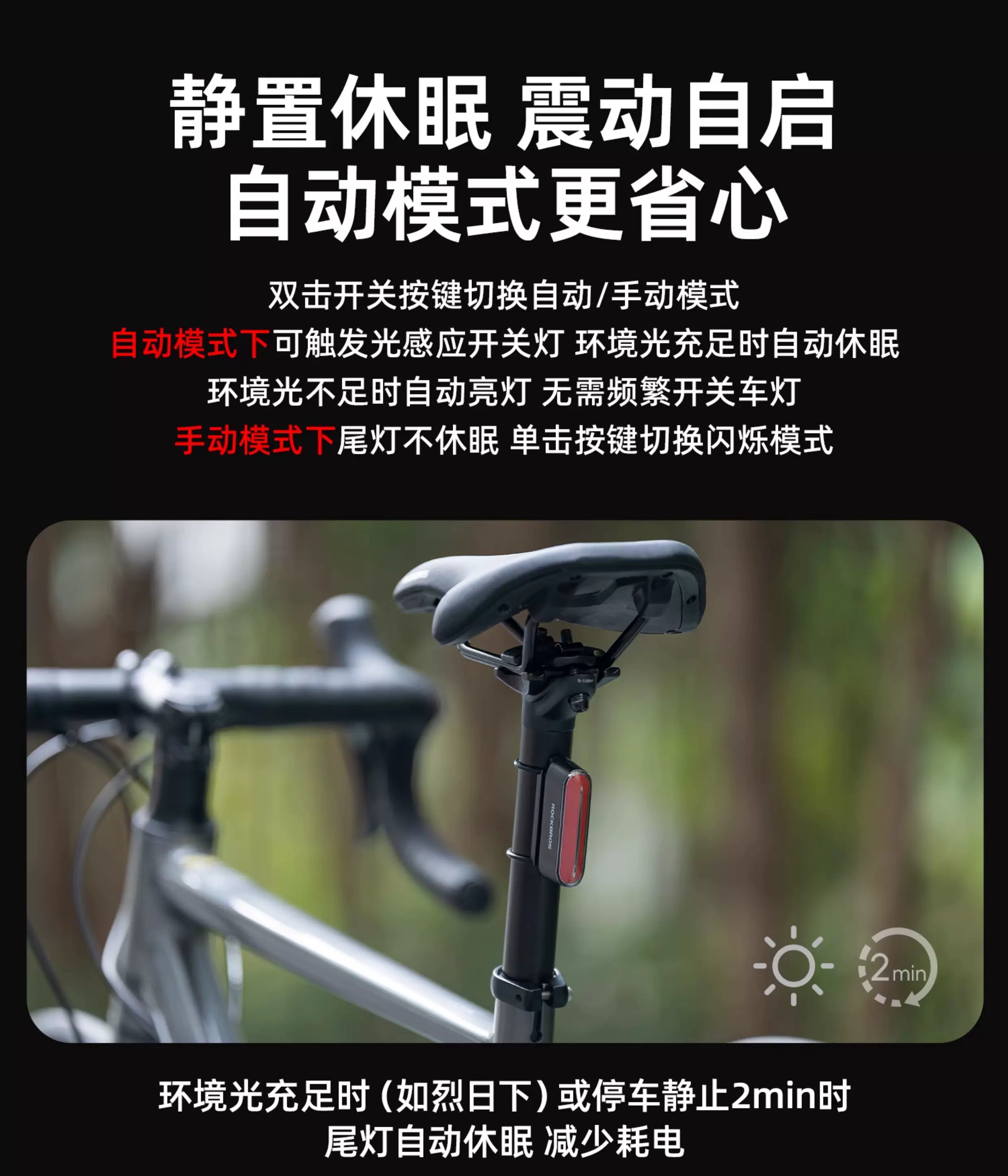 - Đèn hậu xe đạp Rock Brothers đèn phanh thông minh từ tính thiết bị đi xe đạp xe đạp đường bộ xe đạp leo núi đi đêm đèn hậu