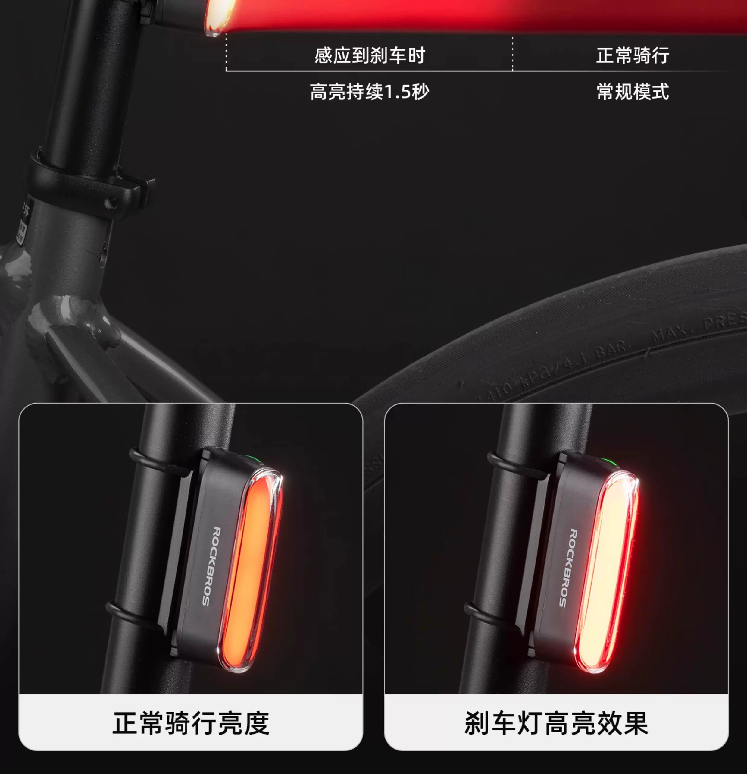 Đèn hậu xe đạp Rock Brothers đèn phanh thông minh từ tính thiết bị đi xe đạp xe đạp đường bộ xe đạp leo núi đi đêm đèn hậu