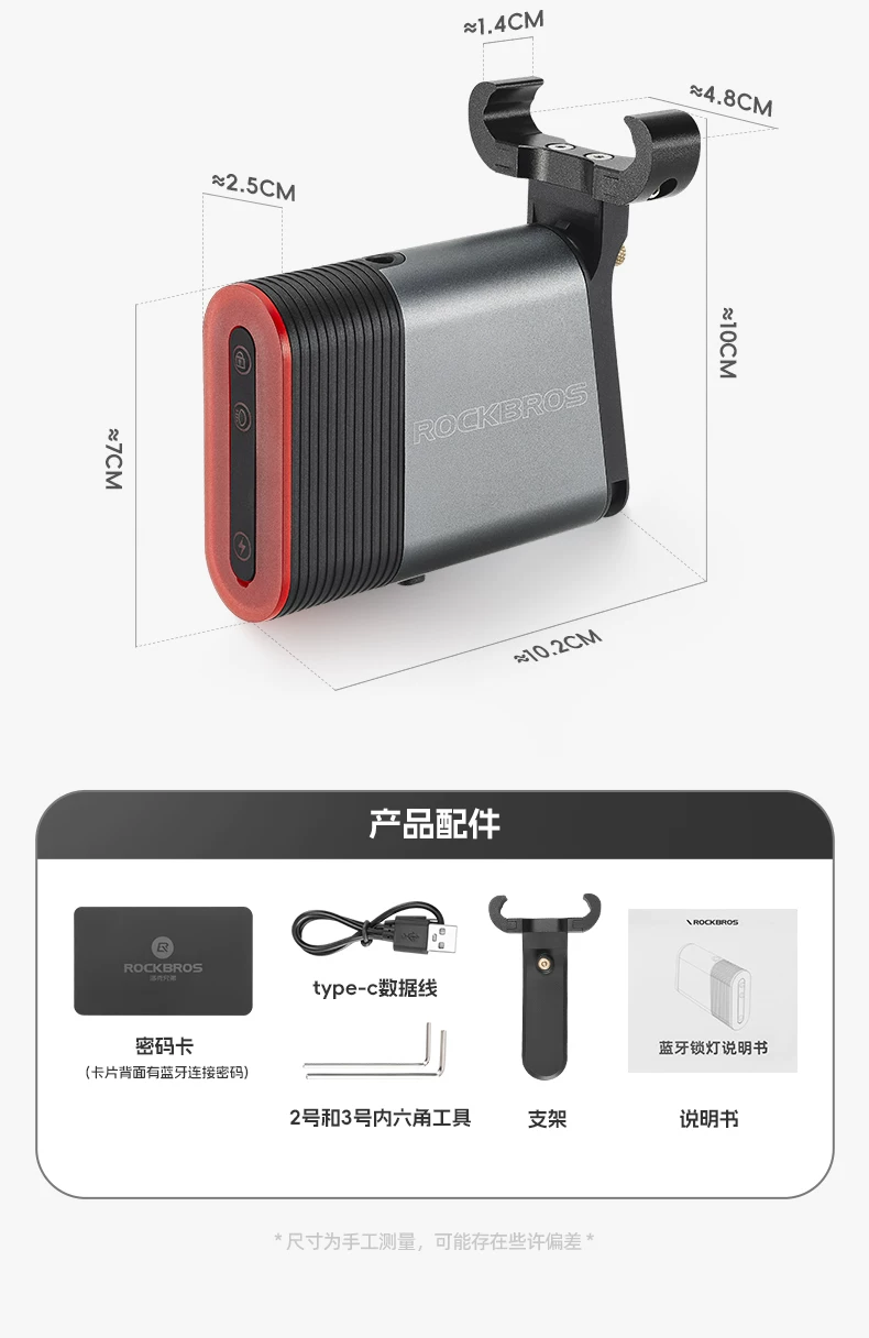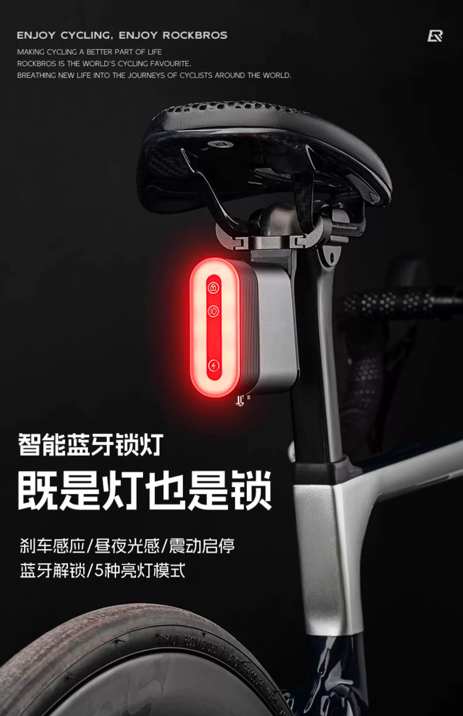 - Đèn hậu xe đạp Rock Brothers, khóa mũ bảo hiểm thông minh, khóa cáp thép mật mã Bluetooth, dành cho xe đạp leo núi, đi đêm