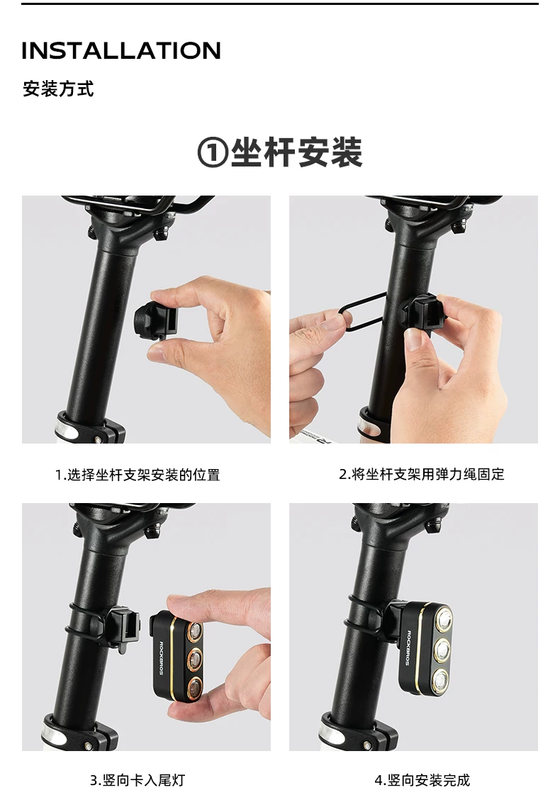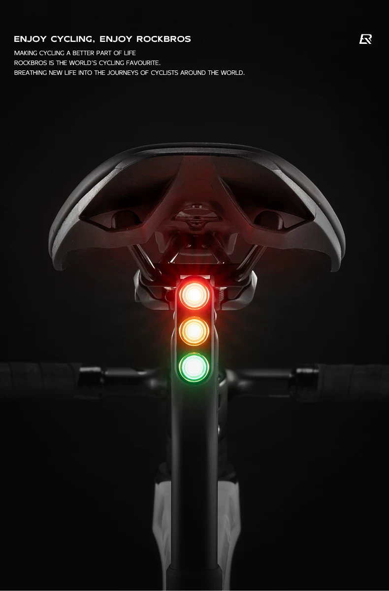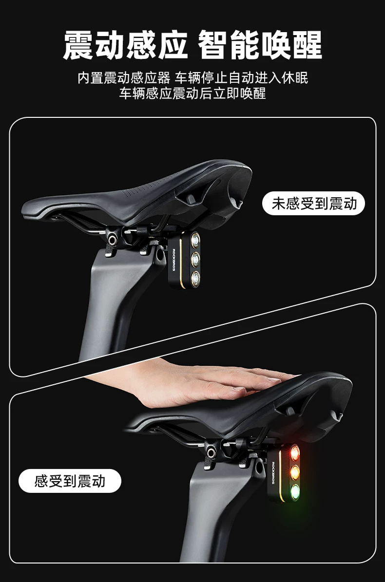 - Đèn hậu xe đạp Rock Brothers xe đạp đường núi cảm biến phanh ba màu cảnh báo đèn hậu thiết bị đi xe ban đêm