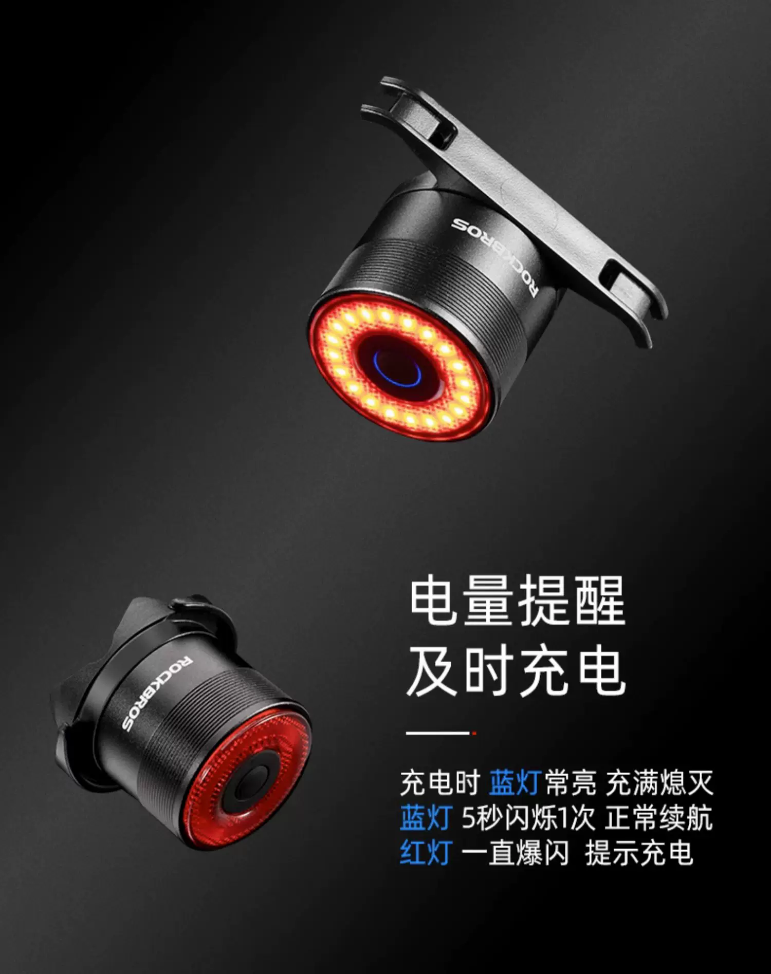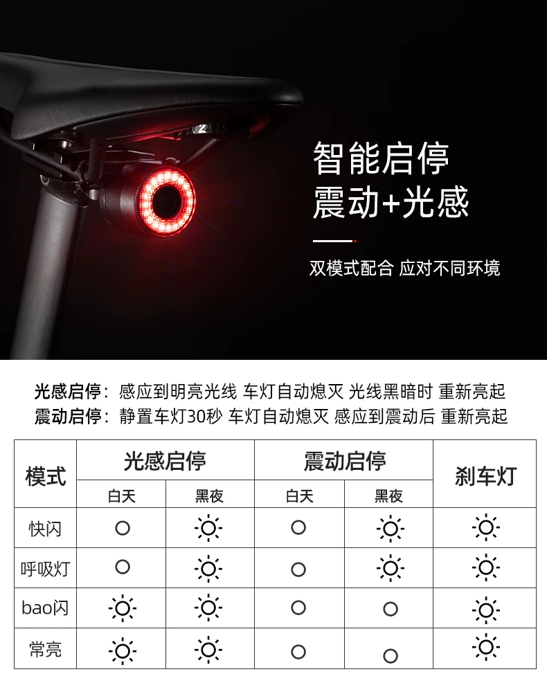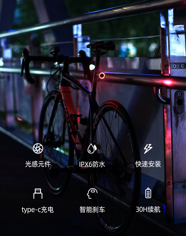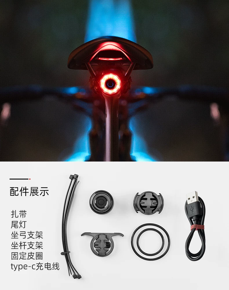 Đèn hậu xe đạp Rock Brothers xe đạp leo núi xe đạp đường bộ đi đêm cảm biến thông minh đèn phanh đèn cảnh báo thiết bị đi xe đạp