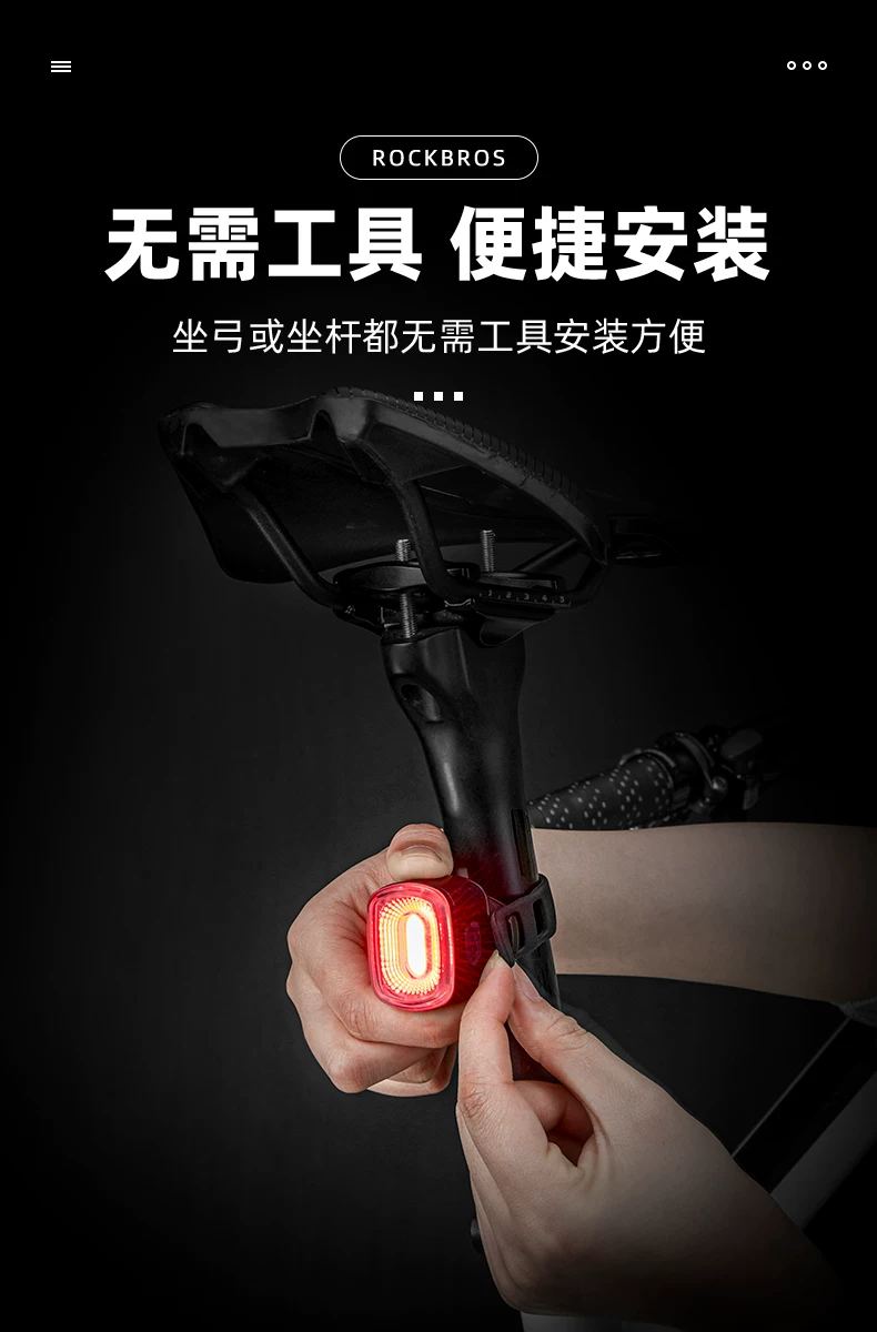 - Đèn hậu xe đạp Rock Brothers xe đạp leo núi xe đạp đường bộ đi đêm cảm biến thông minh sạc đèn phanh thiết bị đạp xe