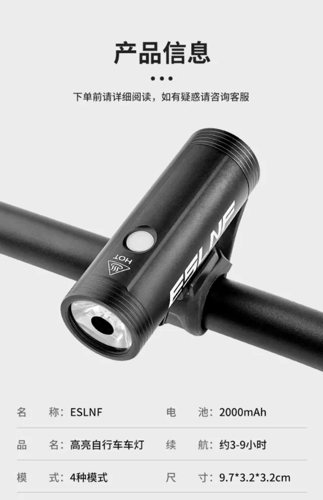 - Đèn xe đạp ESLNF của Đức, đèn trước, đèn pin sạc lại, sáng, thiết bị đạp xe, phụ kiện đèn xe đạp leo núi