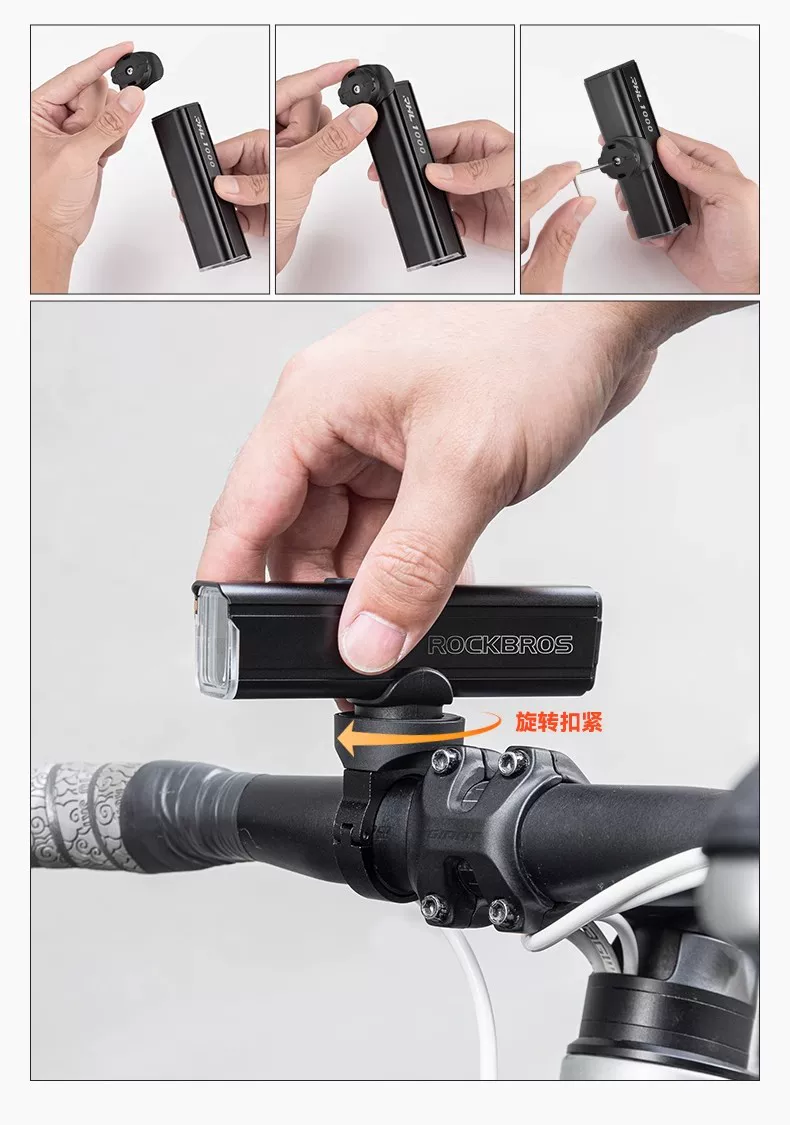 - Đèn xe đạp Rock Brothers 1000 lumens, tích hợp đèn pha và máy tính, bộ phụ kiện gắn treo xe đạp