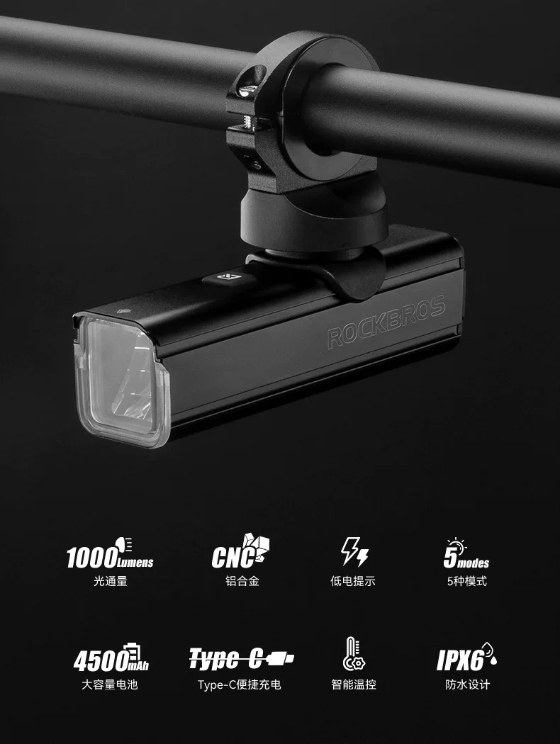 - Đèn xe đạp Rock Brothers đèn pha đi đêm ánh sáng mạnh đèn pin sạc USB xe đạp đường núi thiết bị đi xe đạp
