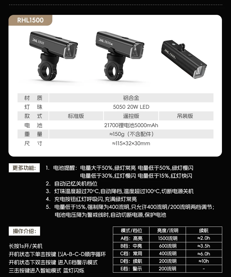 - Đèn xe đạp Rock Brothers, đèn trước, đèn hậu, bộ đèn pin độ sáng cao gắn trên xe đạp leo núi, thiết bị đạp xe