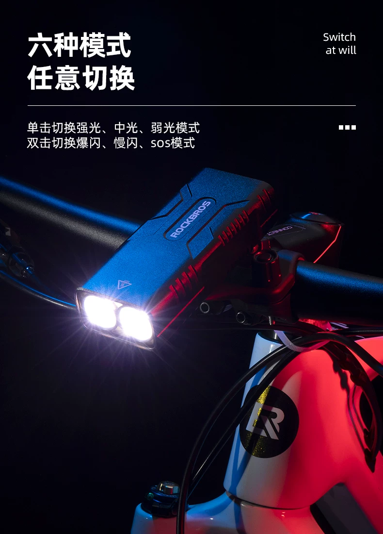 Đèn xe đạp Rock Brothers đi đêm đèn pin sáng xe đạp leo núi đèn pha độ sáng cao thiết bị đi xe đạp chống nước