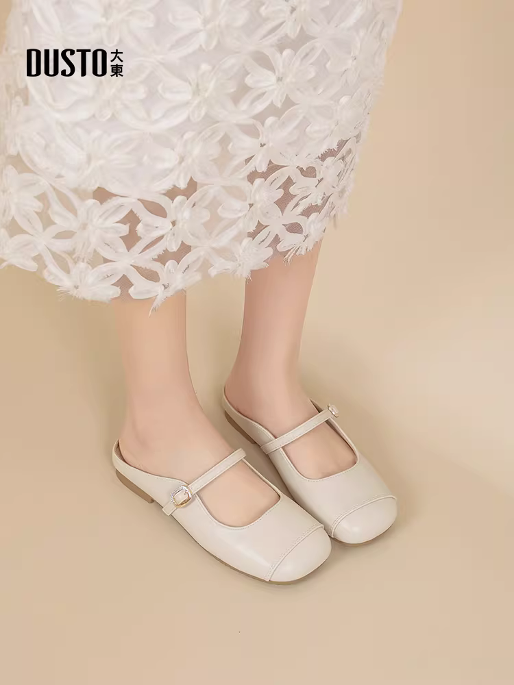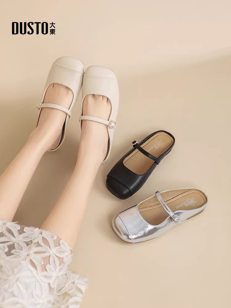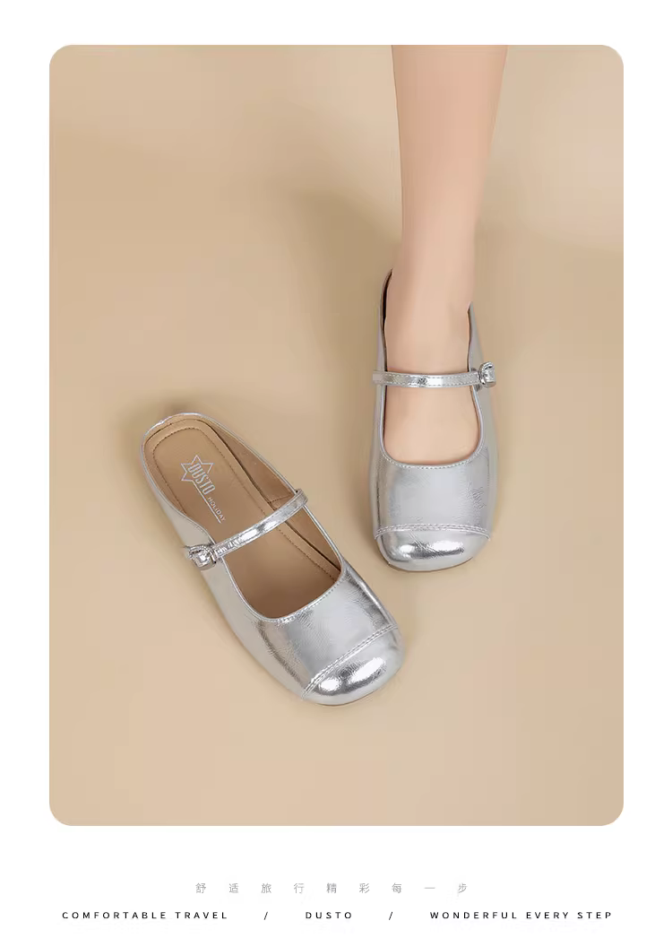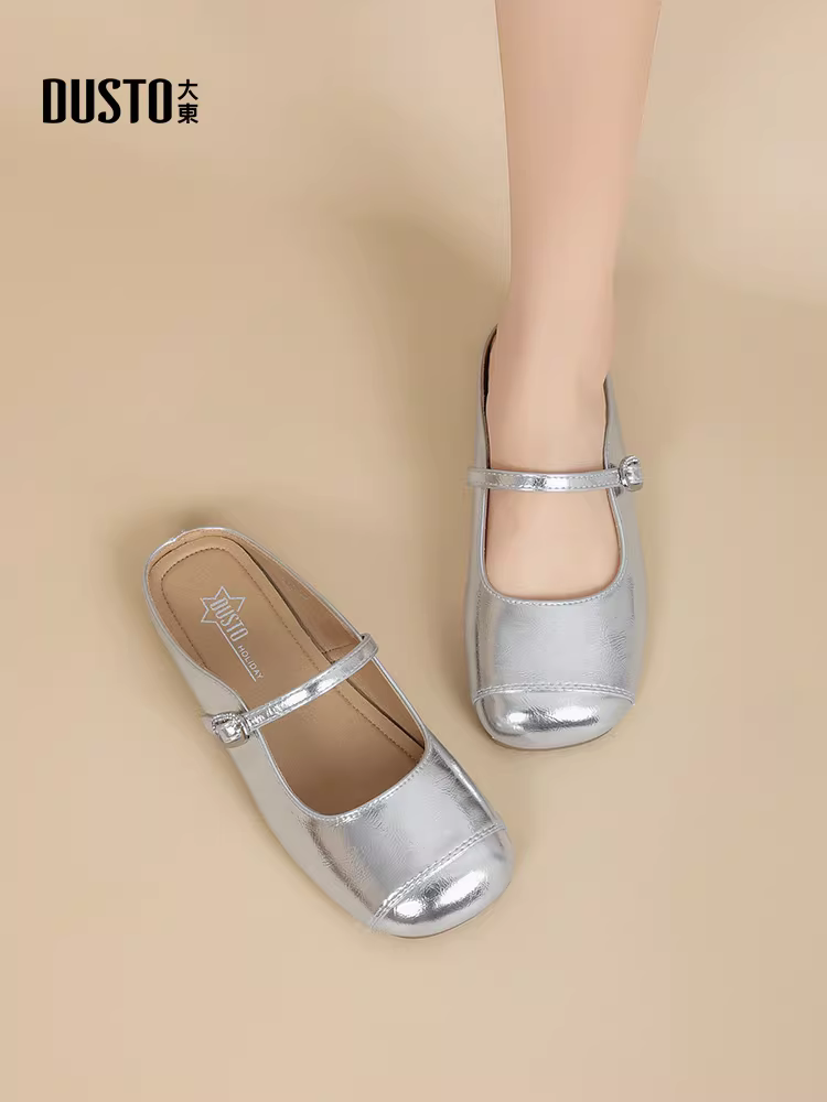 Dép bạc Dadong dành cho nữ, thích hợp đi ngoài trời mùa hè 2025, kiểu mới, kiểu lười, mũi kín, nửa dép, có thể phối với đầm, sandal.