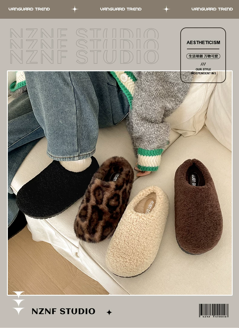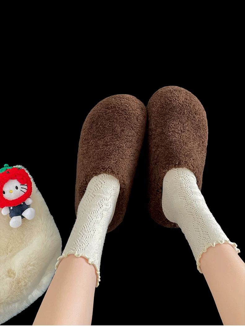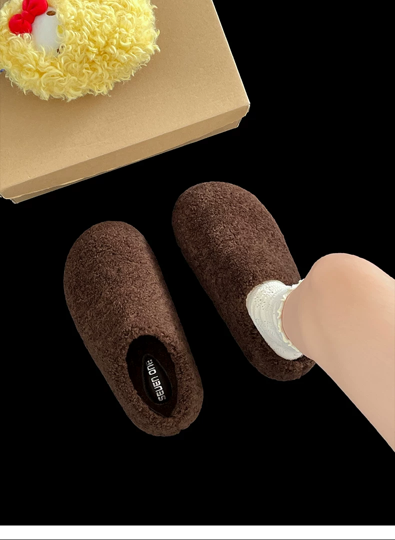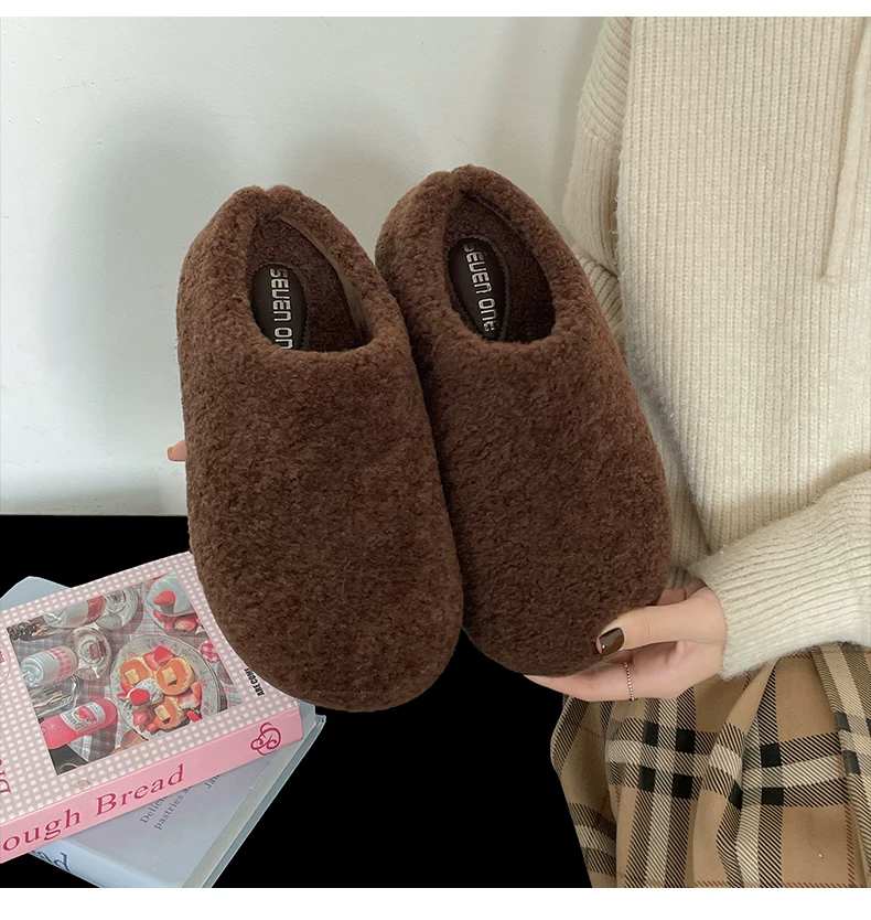 Dép bông đế dày phong cách retro màu đen dành cho nữ, mặc ngoài trời mùa đông, kiểu mới 2025, ấm áp, chống trơn trượt, dép bông tăng chiều cao.