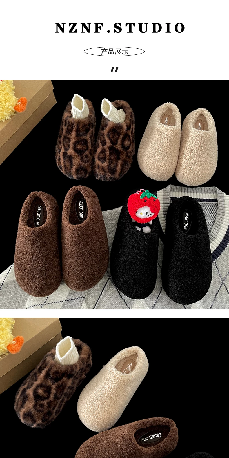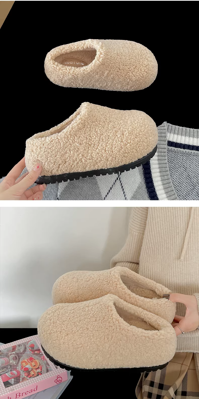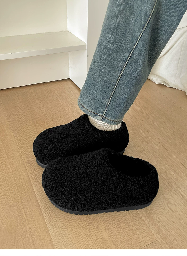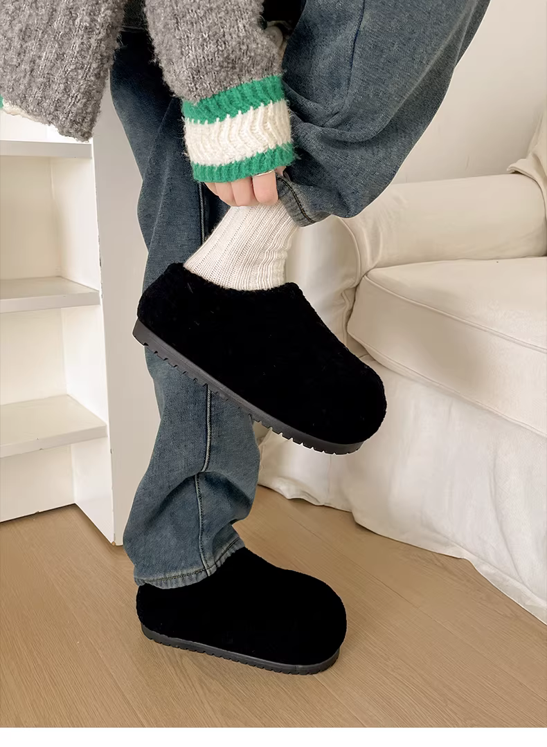 - Dép bông đế dày phong cách retro màu đen dành cho nữ, mặc ngoài trời mùa đông, kiểu mới 2025, ấm áp, chống trơn trượt, dép bông tăng chiều cao.