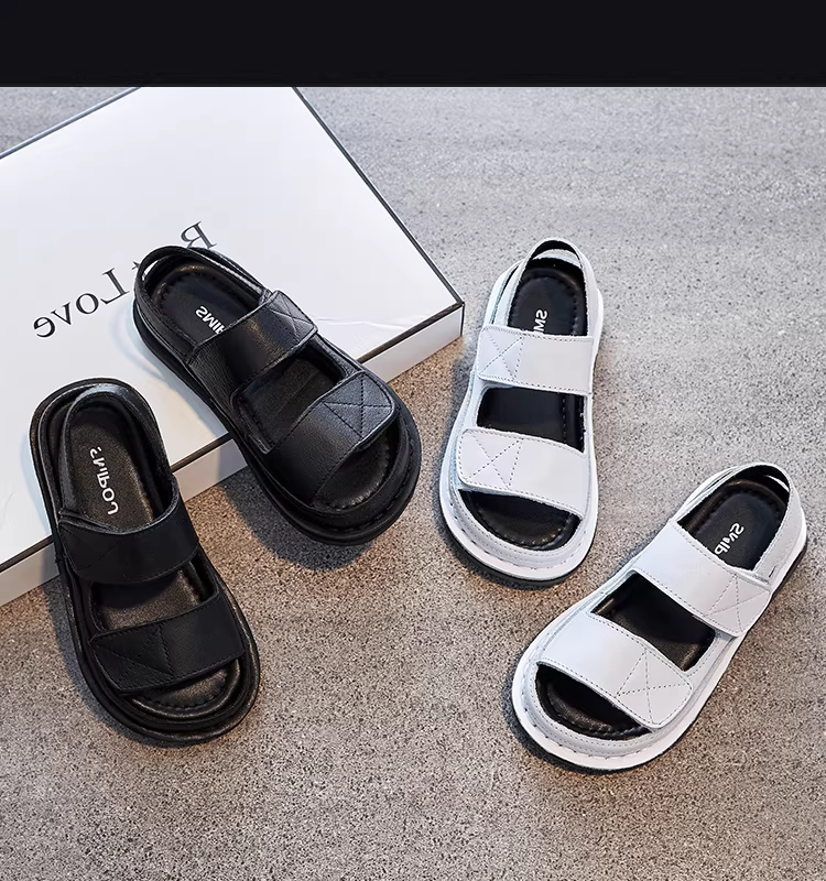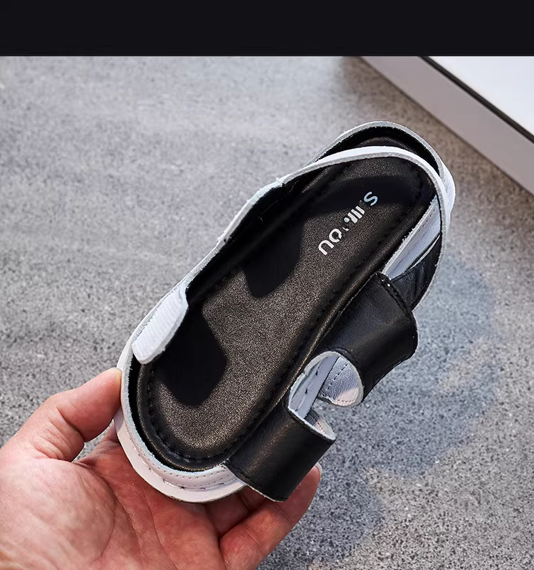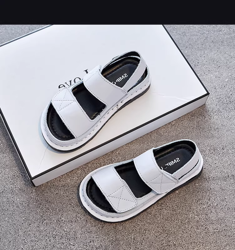 - Dép da thật trẻ em mùa hè 2025 kiểu mới, dép bé trai đế mềm chống trơn, mũi kín bảo vệ ngón chân, giày trẻ em, giày đi biển cho bé gái
