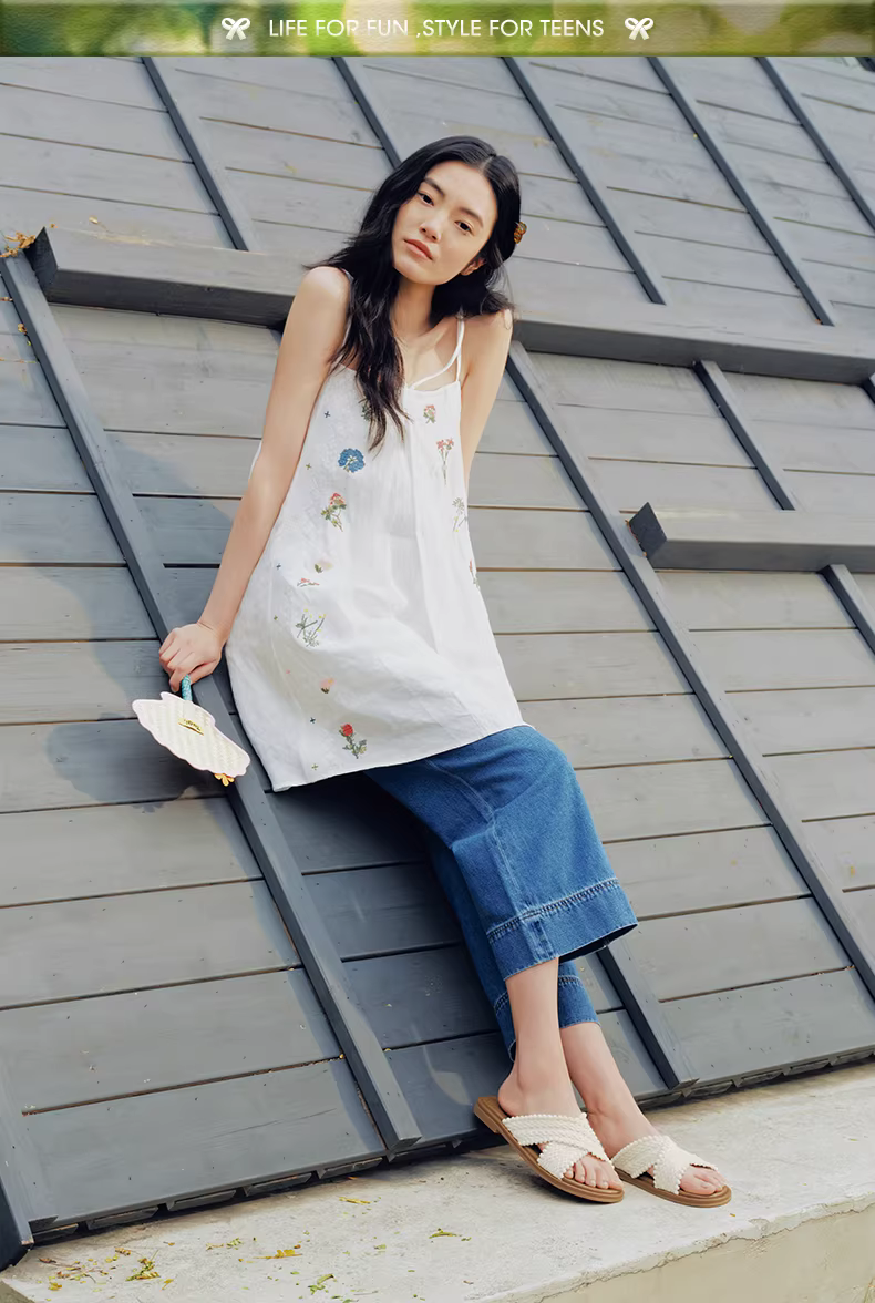Dép đế bằng dệt Tianmeiyi dành cho nữ, dép đi ngoài trời thông thường, mẫu mùa hè mới KT072BT5