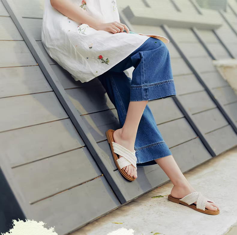 - Dép đế bằng dệt Tianmeiyi dành cho nữ, dép đi ngoài trời thông thường, mẫu mùa hè mới KT072BT5
