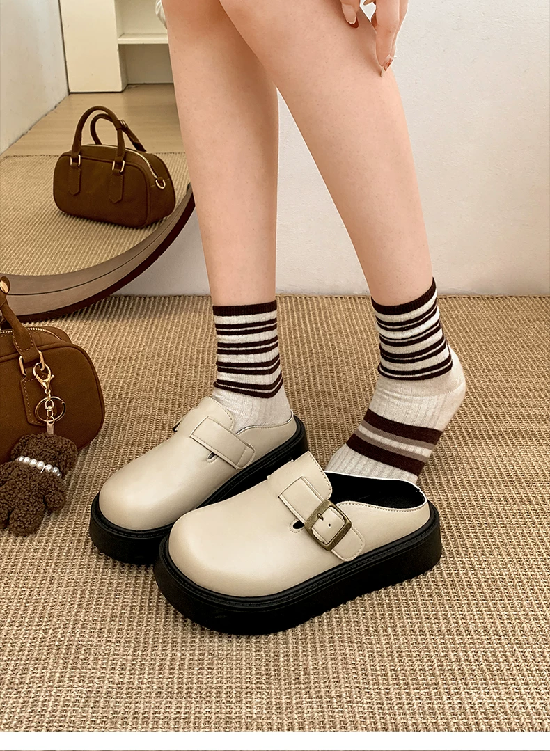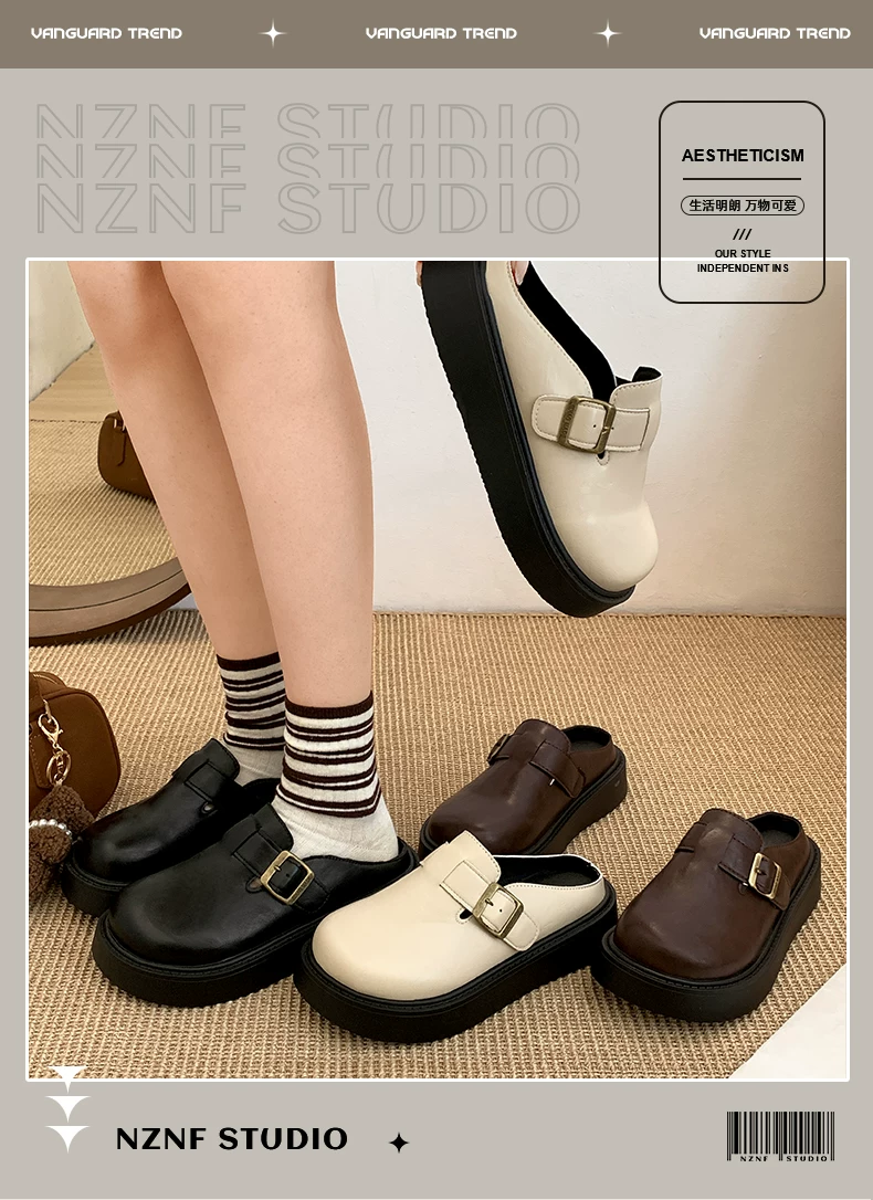 - Dép đế dày kiểu cổ điển kiểu Nam Trung Quốc dành cho nữ, trang phục dạo phố mùa thu, dép nửa đế Birkenstock chống trượt mới năm 2025.