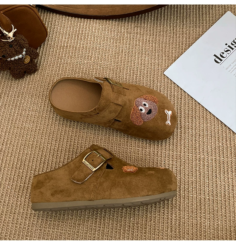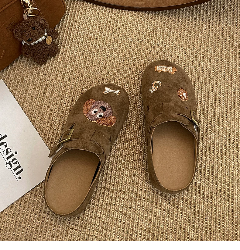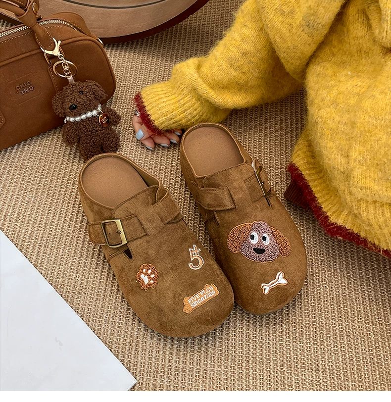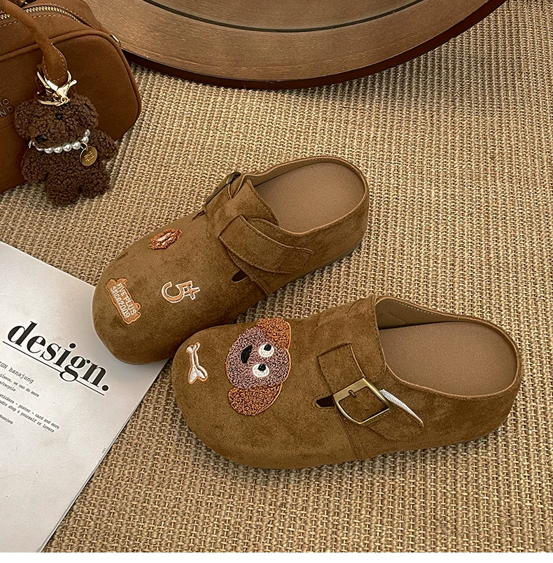 Dép lê nữ đế dày kiểu hoạt hình cổ điển Pháp, đi ngoài trời, kiểu thu đông 2025 mới, phối chân váy, chống trơn trượt, kiểu Birkenstock nửa dép