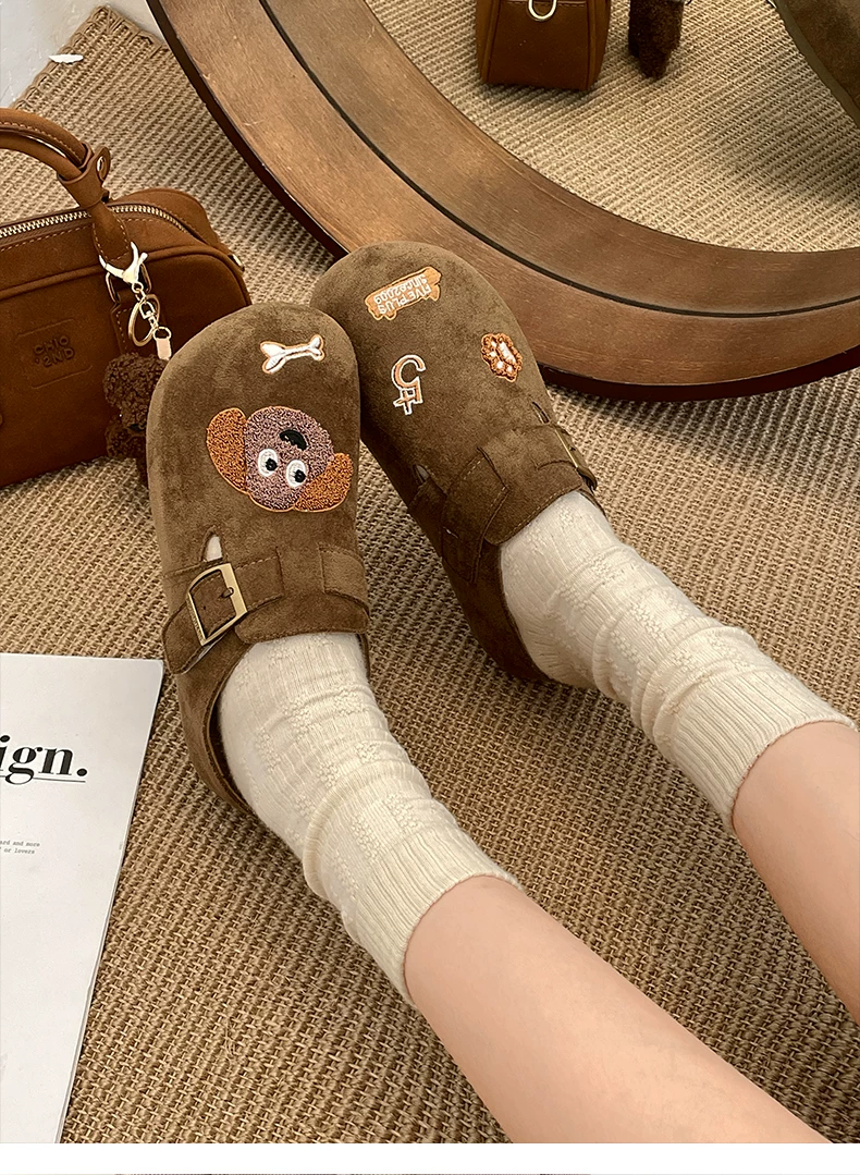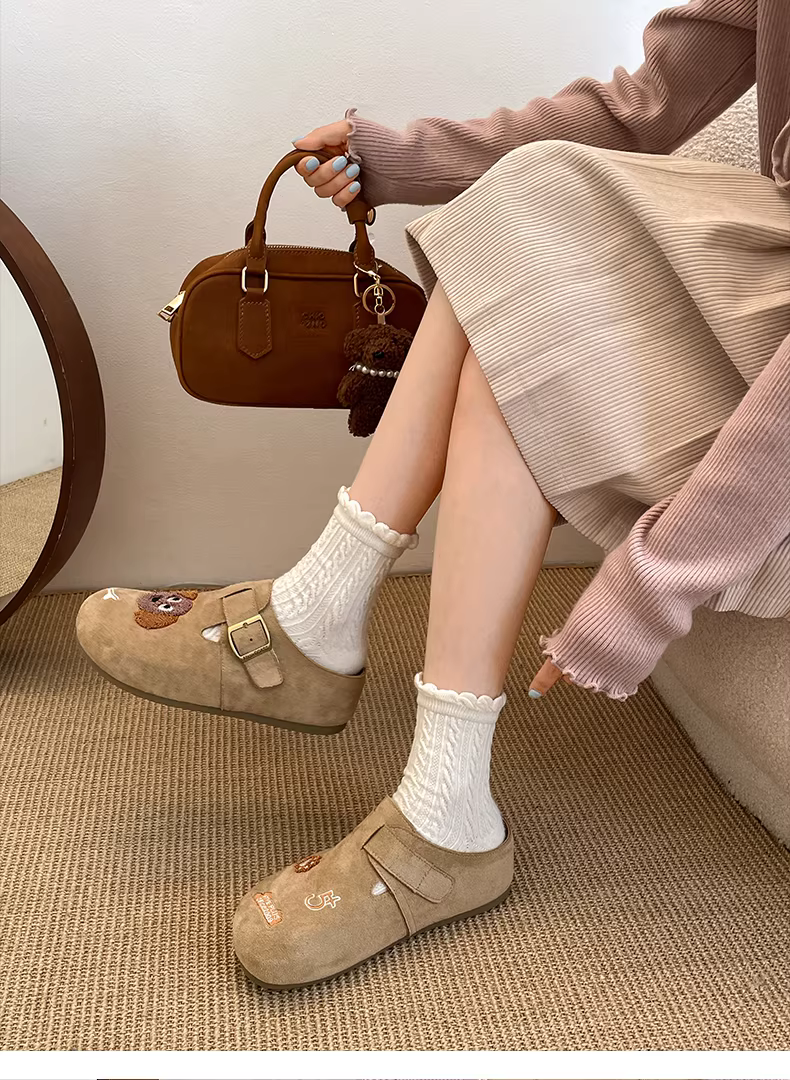 - Dép lê nữ đế dày kiểu hoạt hình cổ điển Pháp, đi ngoài trời, kiểu thu đông 2025 mới, phối chân váy, chống trơn trượt, kiểu Birkenstock nửa dép