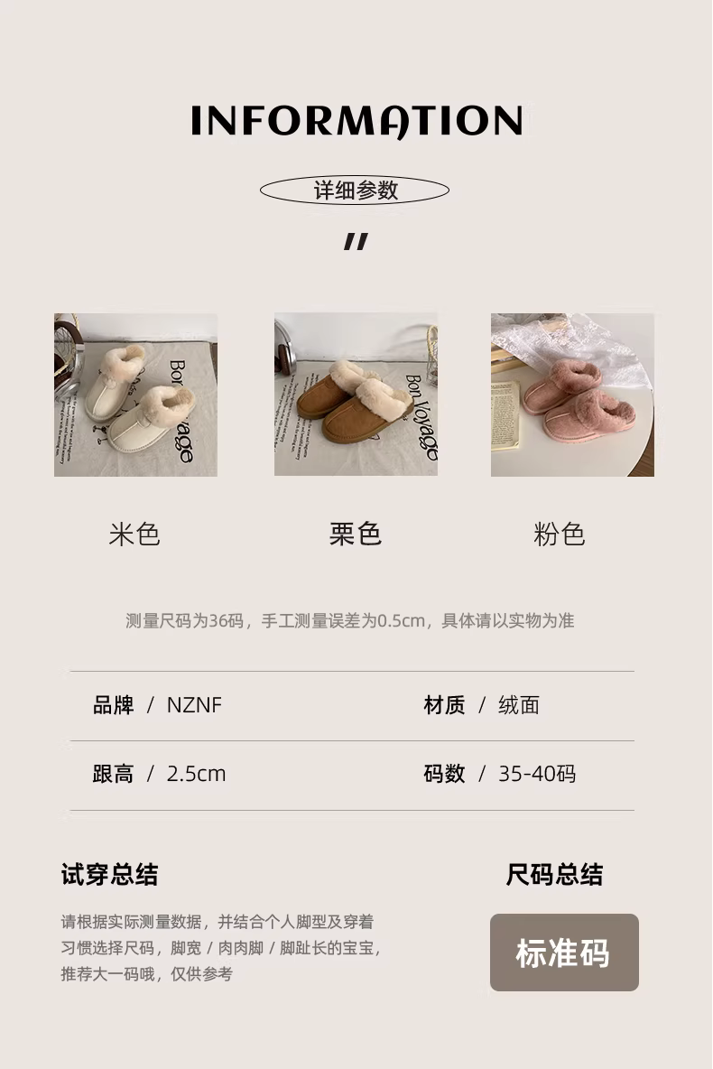 - Dép lông dày đế dày chống trơn kiểu cổ điển Nanzai dành cho nữ, dùng ngoài trời mùa đông, dép bông ấm áp mới năm 2025.
