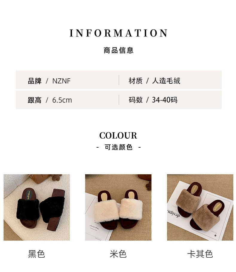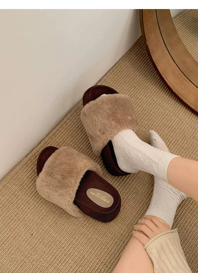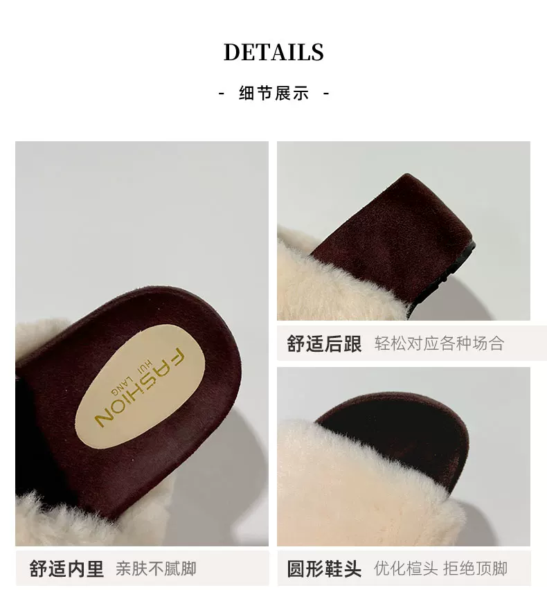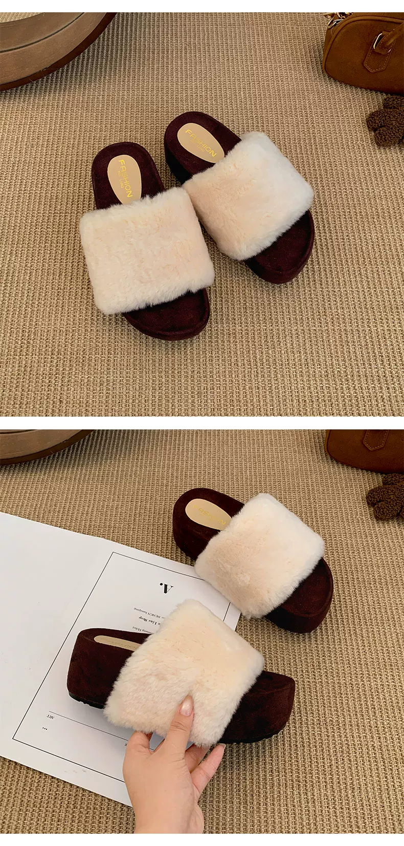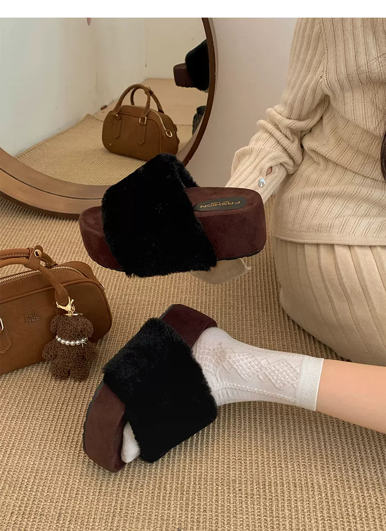 - Dép lông dày đế dày chống trơn màu đen dành cho nữ, thích hợp mang đi ngoài trời, kiểu dáng thu đông 2025 mới, dép lười retro tăng chiều cao.