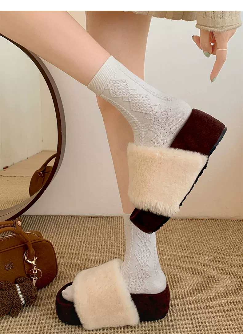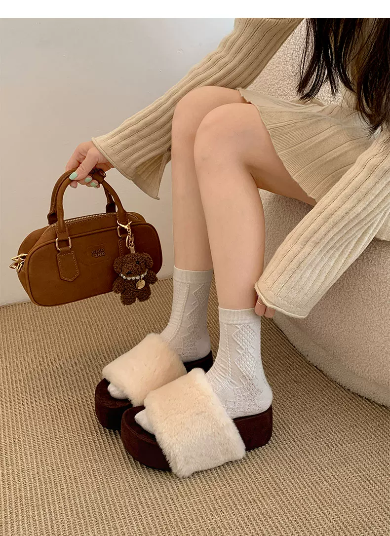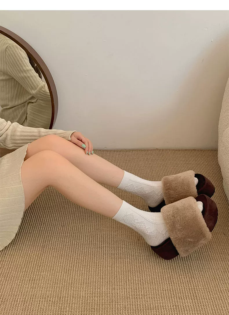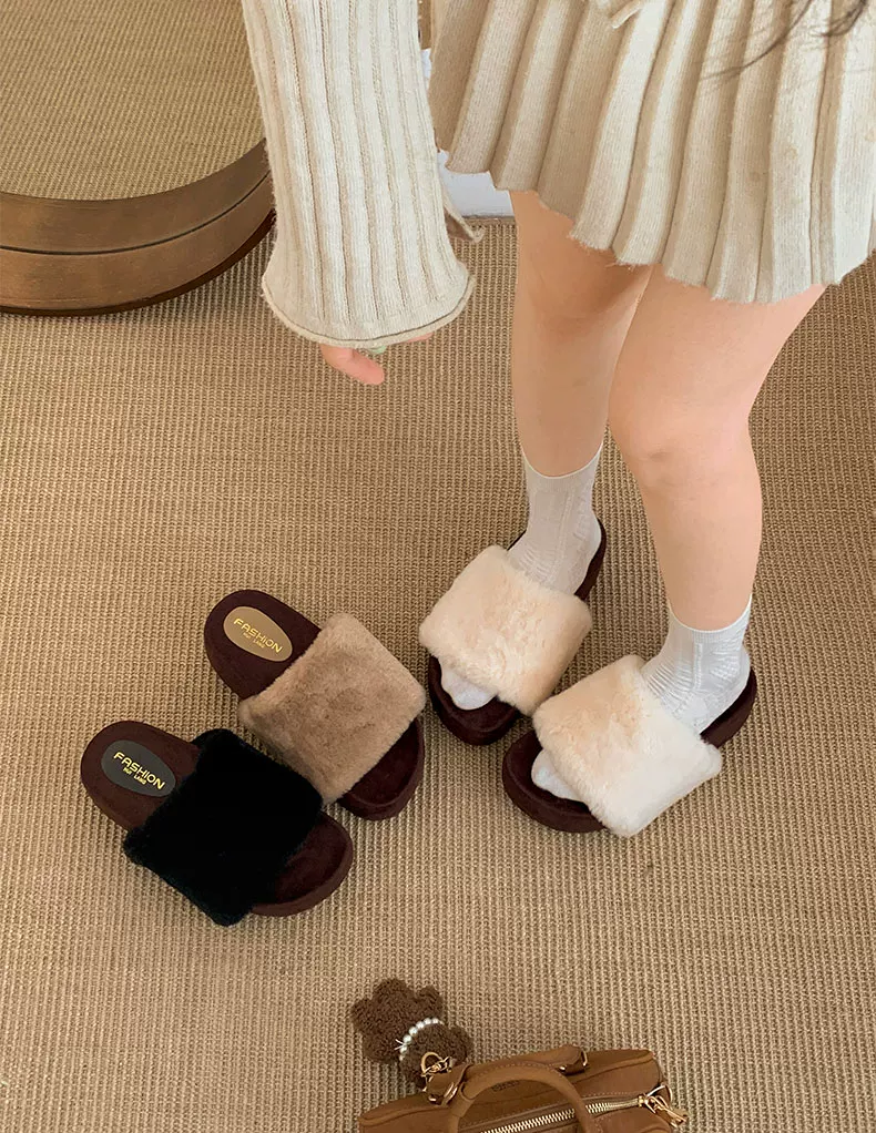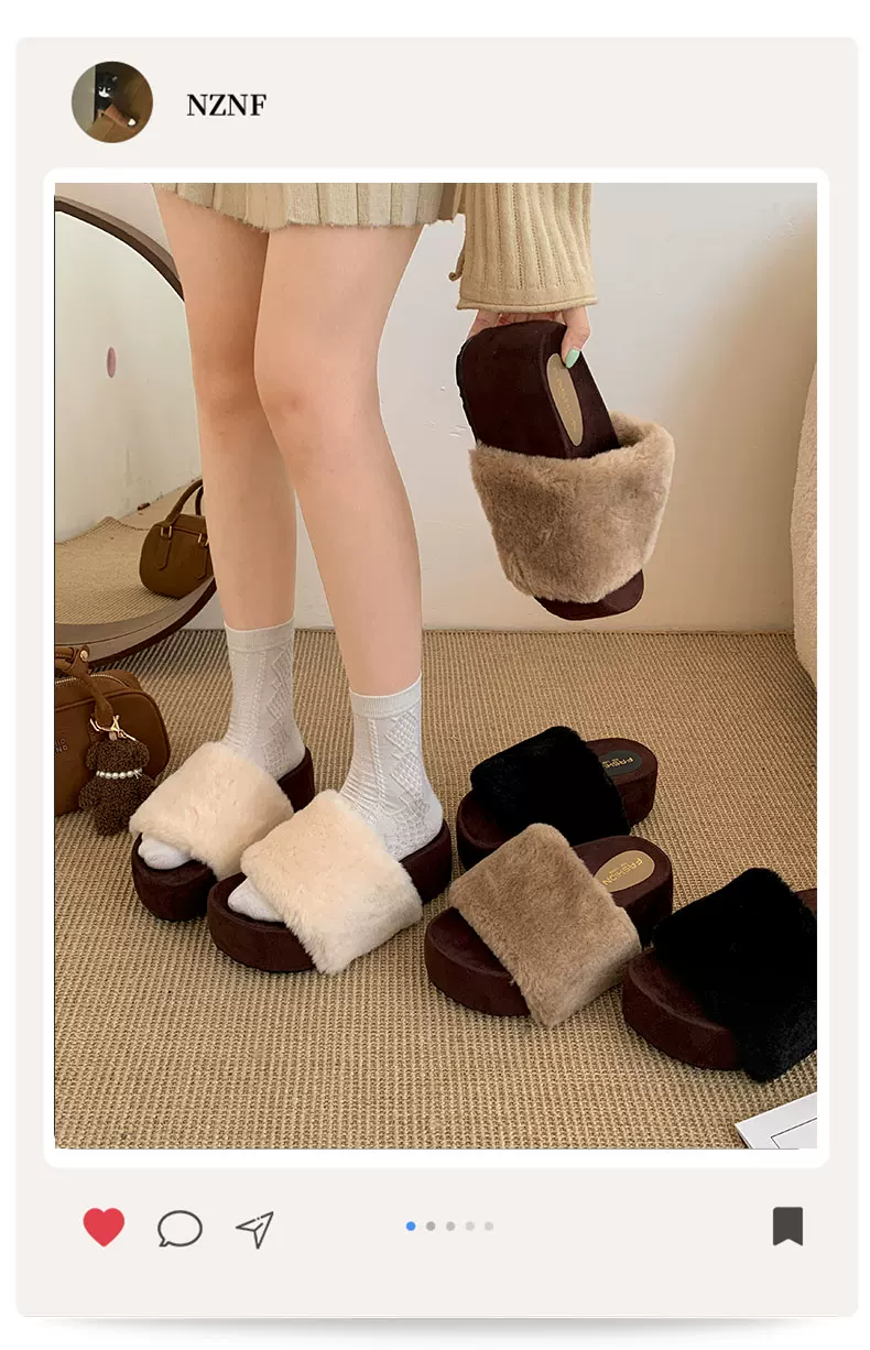 - Dép lông dày đế dày chống trơn màu đen dành cho nữ, thích hợp mang đi ngoài trời, kiểu dáng thu đông 2025 mới, dép lười retro tăng chiều cao.