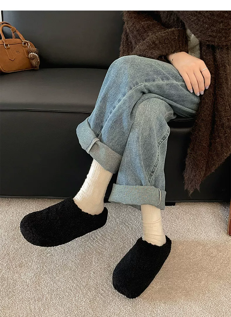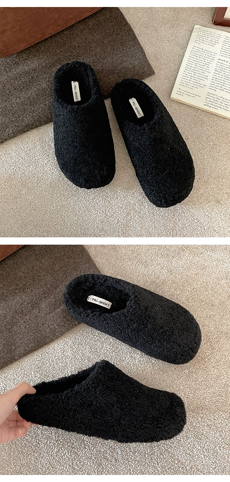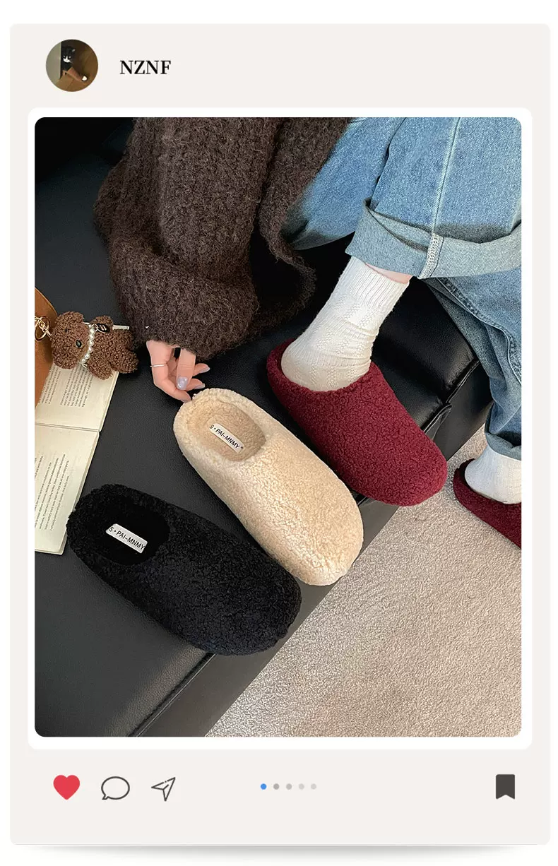 Dép lông dày đế dày chống trơn màu đỏ dành cho nữ, thích hợp để mang ngoài trời, dép bông mũi kín kiểu Birkenstock tăng chiều cao đa năng mùa thu đông 2025.