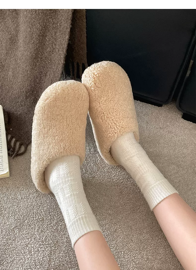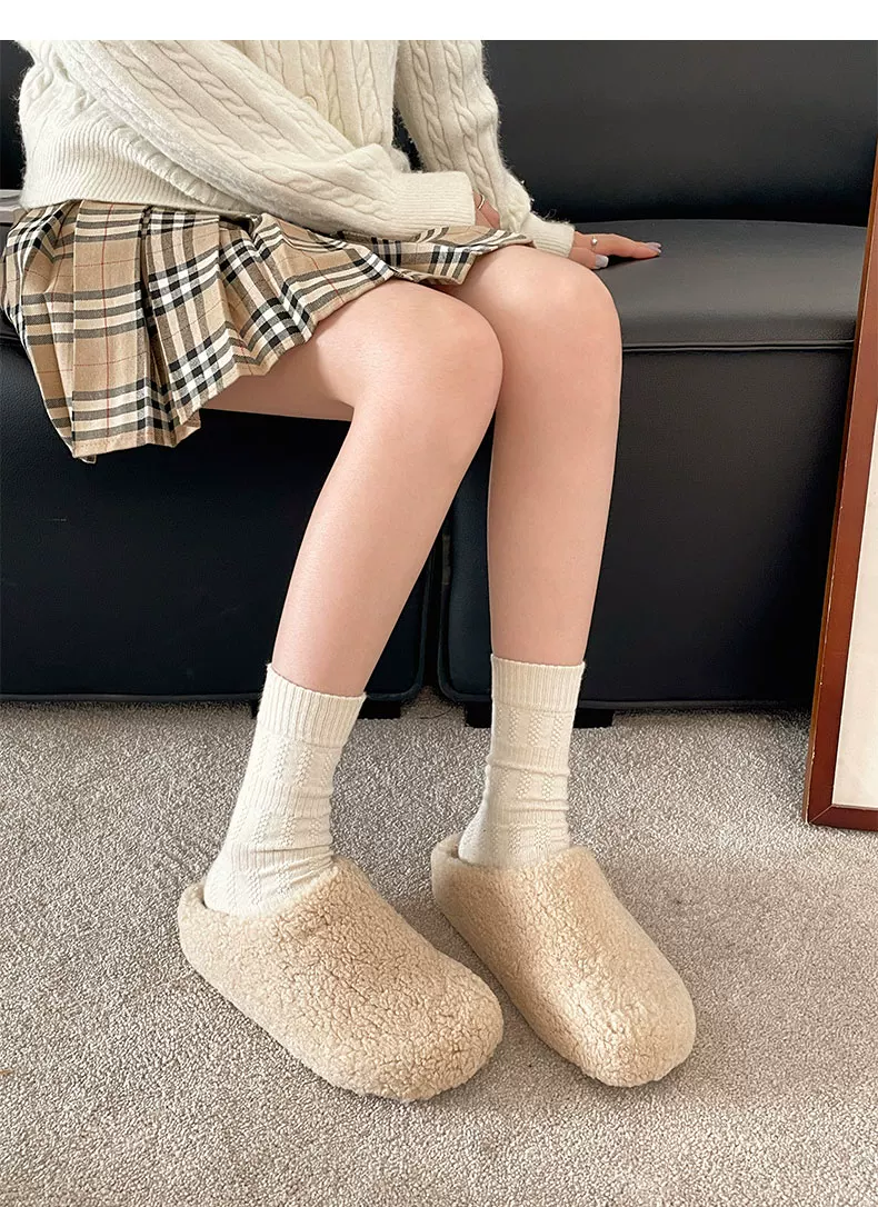 - Dép lông dày đế dày chống trơn màu đỏ dành cho nữ, thích hợp để mang ngoài trời, dép bông mũi kín kiểu Birkenstock tăng chiều cao đa năng mùa thu đông 2025.