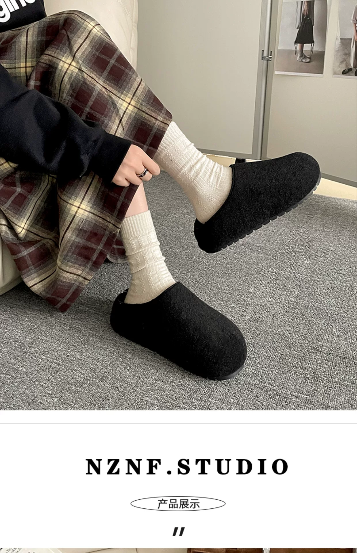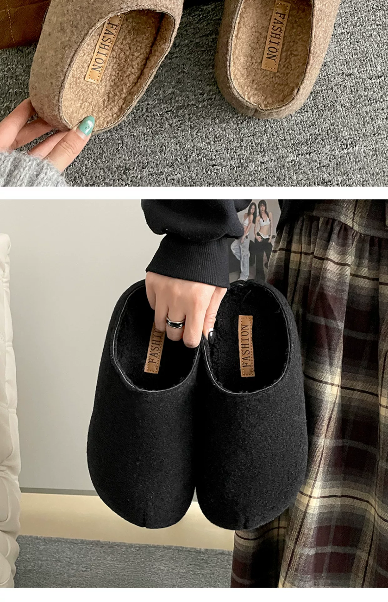 - Dép lông dày đế xuồng kiểu retro dành cho nữ, phong cách Xuân Thu 2025 mới, lót lông cừu giữ ấm, kiểu Birkenstock, mũi kín.