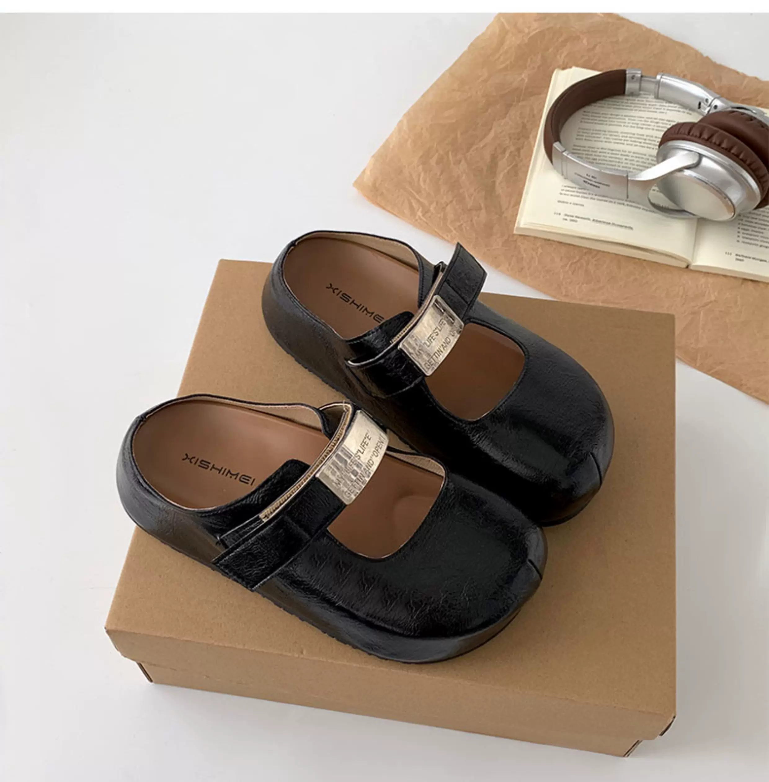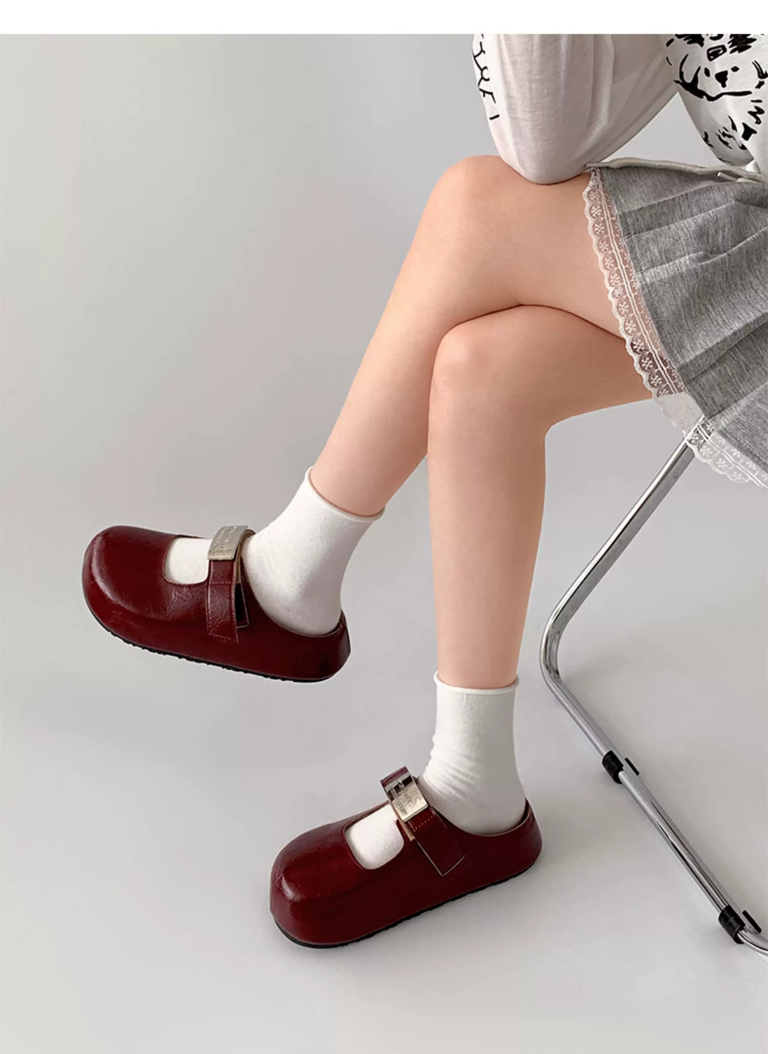 - Dép nữ đế cao kiểu retro màu đỏ, mũi kín, đi ngoài trời mùa hè, kiểu mới 2025, thích hợp phối cùng váy, dép nửa đế dày kiểu Birkenstock.
