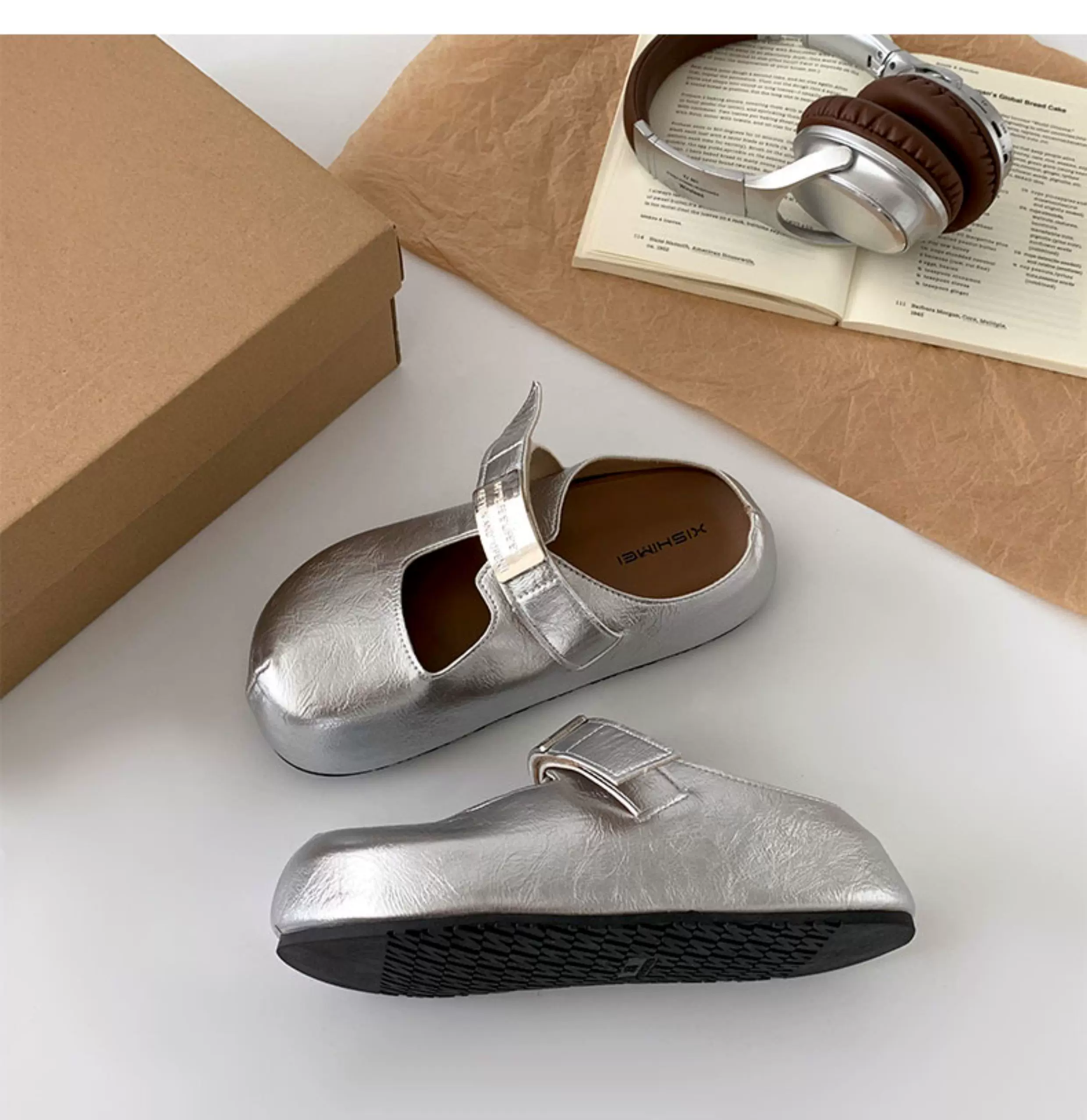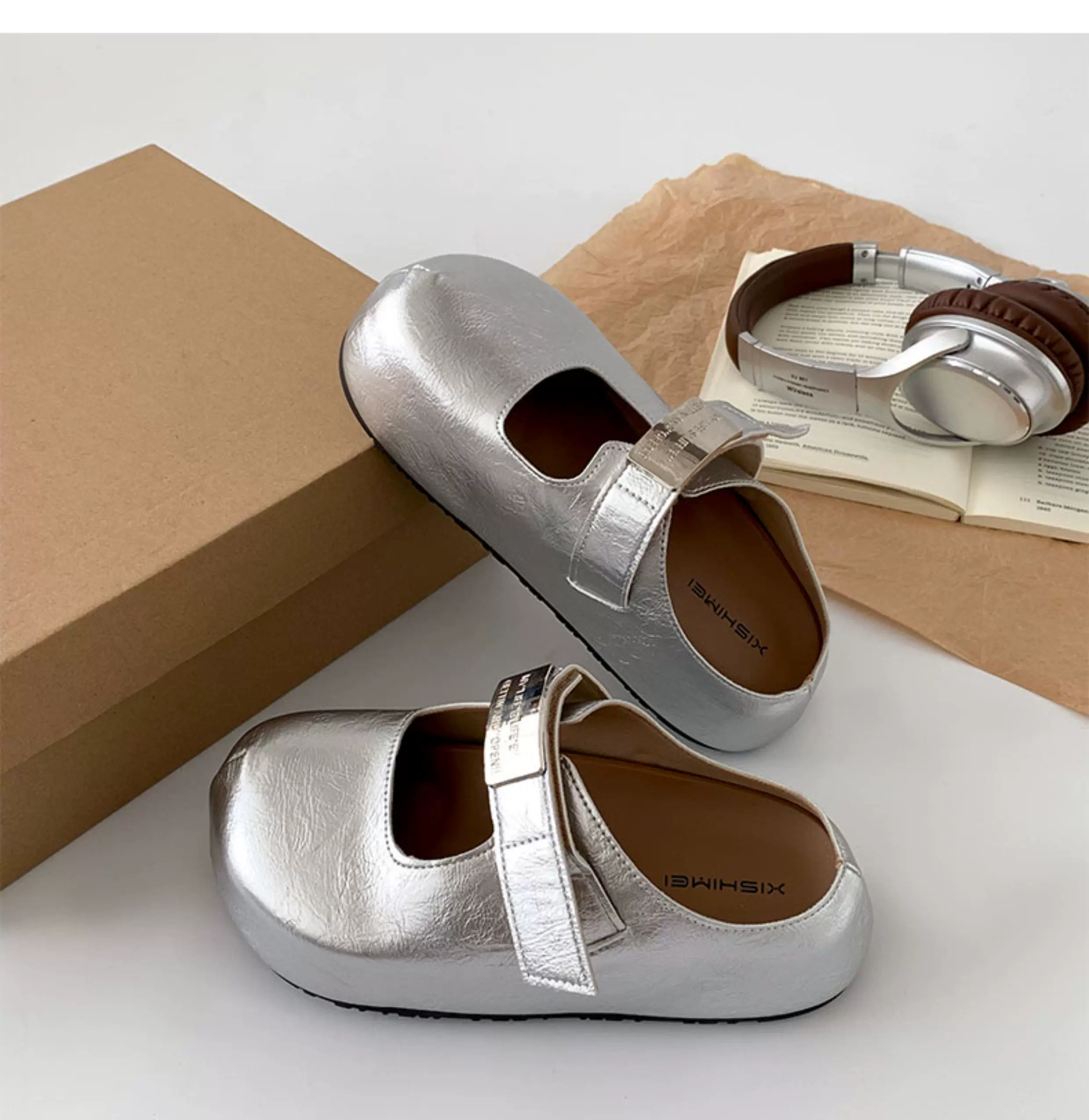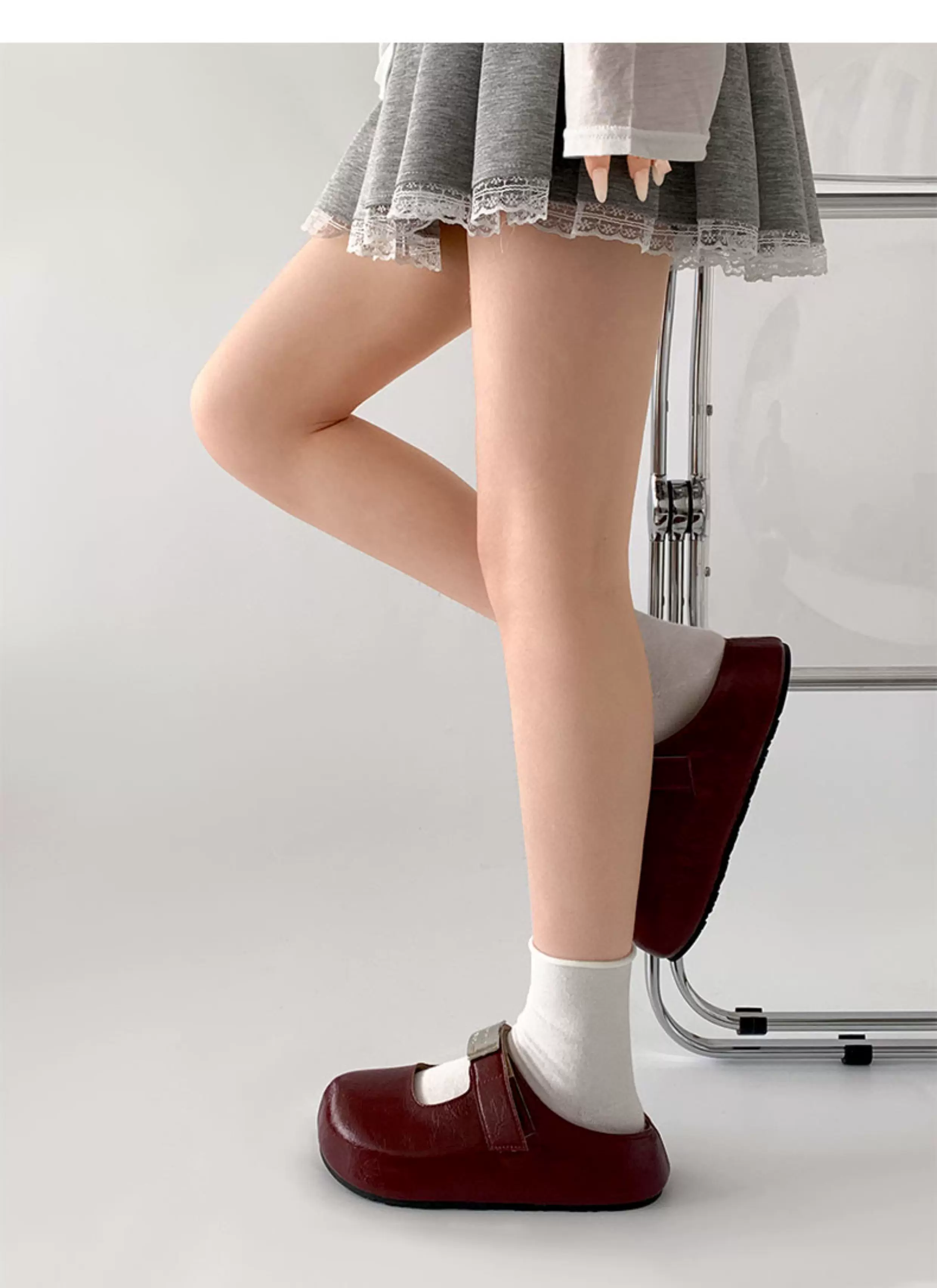 Dép nữ đế cao kiểu retro màu đỏ, mũi kín, đi ngoài trời mùa hè, kiểu mới 2025, thích hợp phối cùng váy, dép nửa đế dày kiểu Birkenstock.