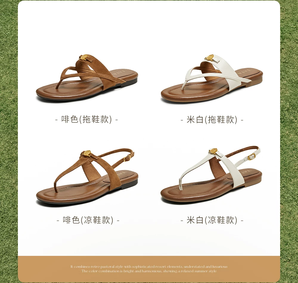 Dép nữ TATA kiểu dáng cổ điển, dép xỏ ngón đi vườn, dép đế bằng, phong cách tiền cổ 7H202BT5