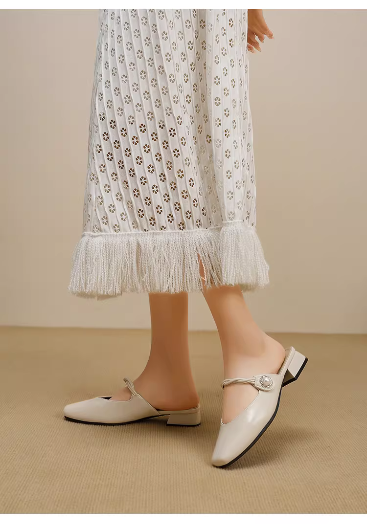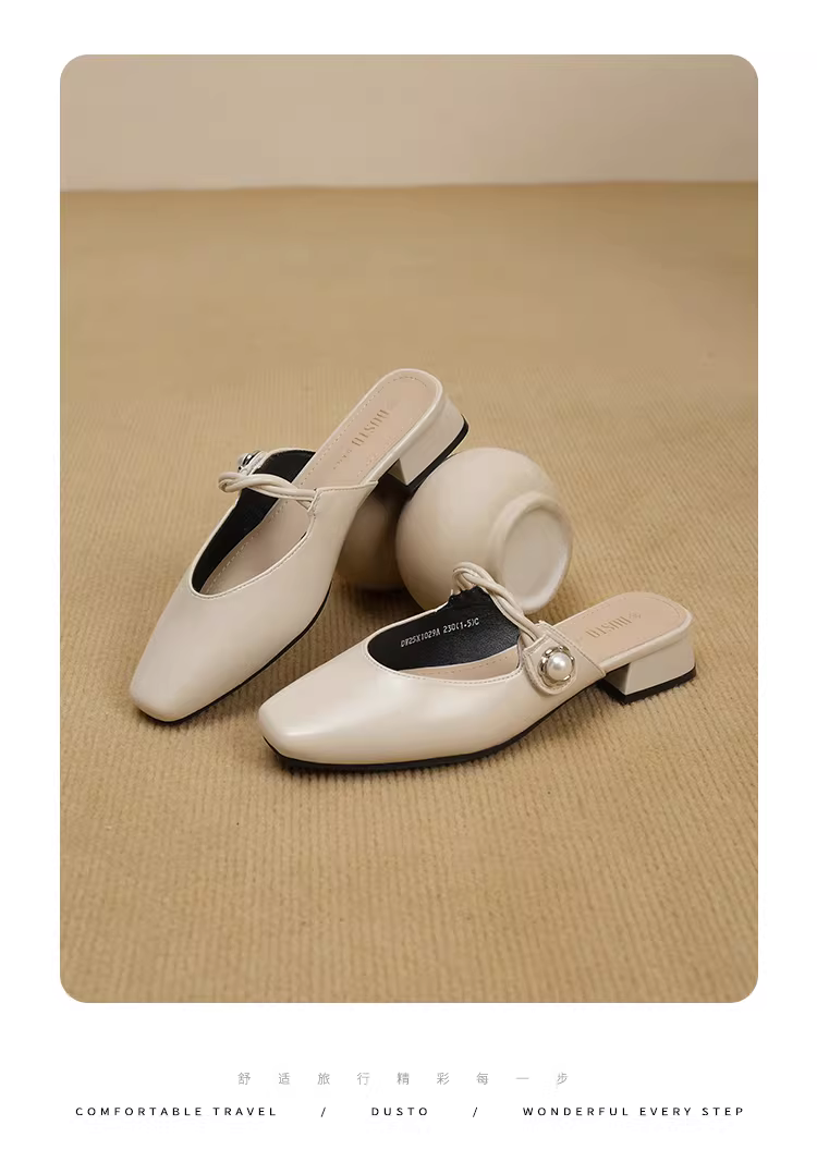 - Dép quai bạc Dadong dành cho nữ, đi ngoài trời mùa hè, dép kiểu Pháp mùa hè mới 2025, dép lê đế thấp, dép nửa ngón.