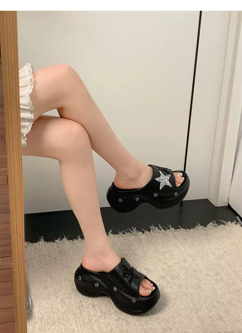 - Dép quai ngang đế dày màu đen thời trang dành cho nữ, kiểu mới hè 2025, thích hợp phối cùng váy, dép kiểu Pháp thoải mái.