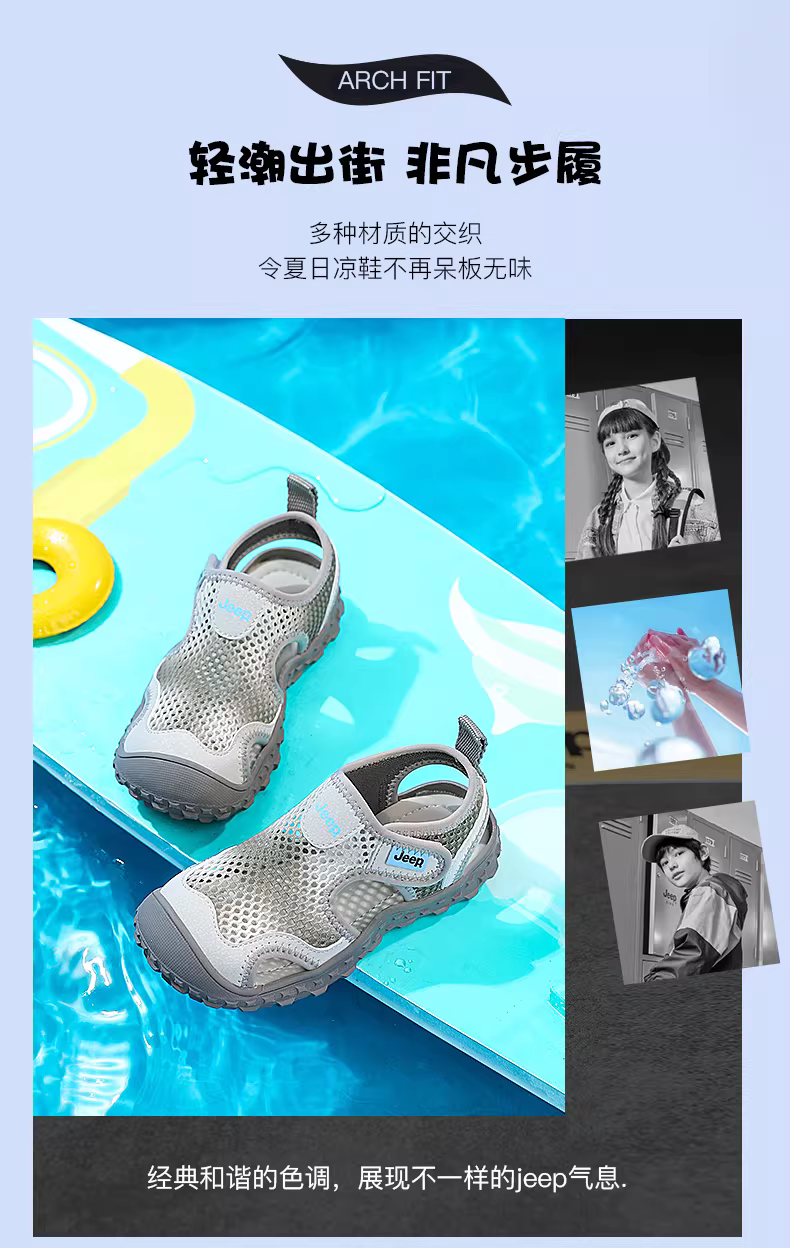 - Dép trẻ em Jeep dành cho bé gái, giày Shuoxi, giày đi nước mũi kín kiểu mùa hè, giày đi biển mùa hè mới cho bé trai năm 2025.