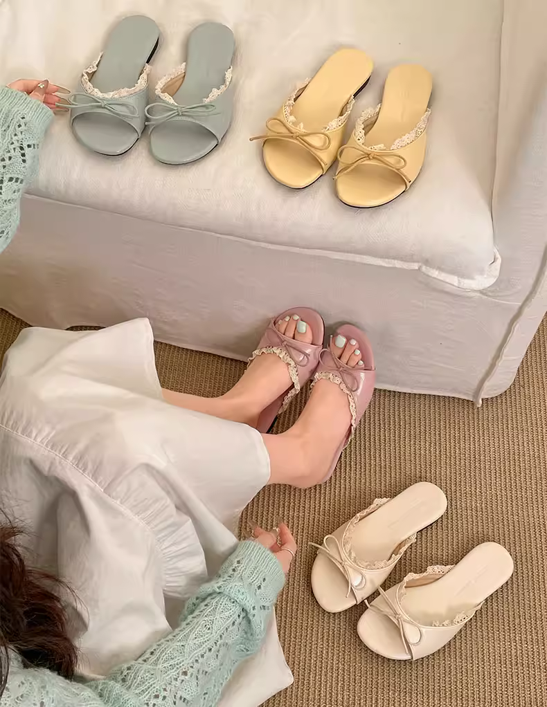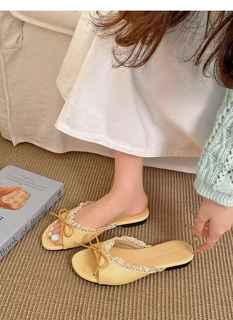 Dép xỏ ngón đế bằng chống trơn kiểu tiên nữ Pháp dành cho nữ, trang phục mùa hè, kiểu mới 2025, dép đa năng phối hợp tốt với chân váy.
