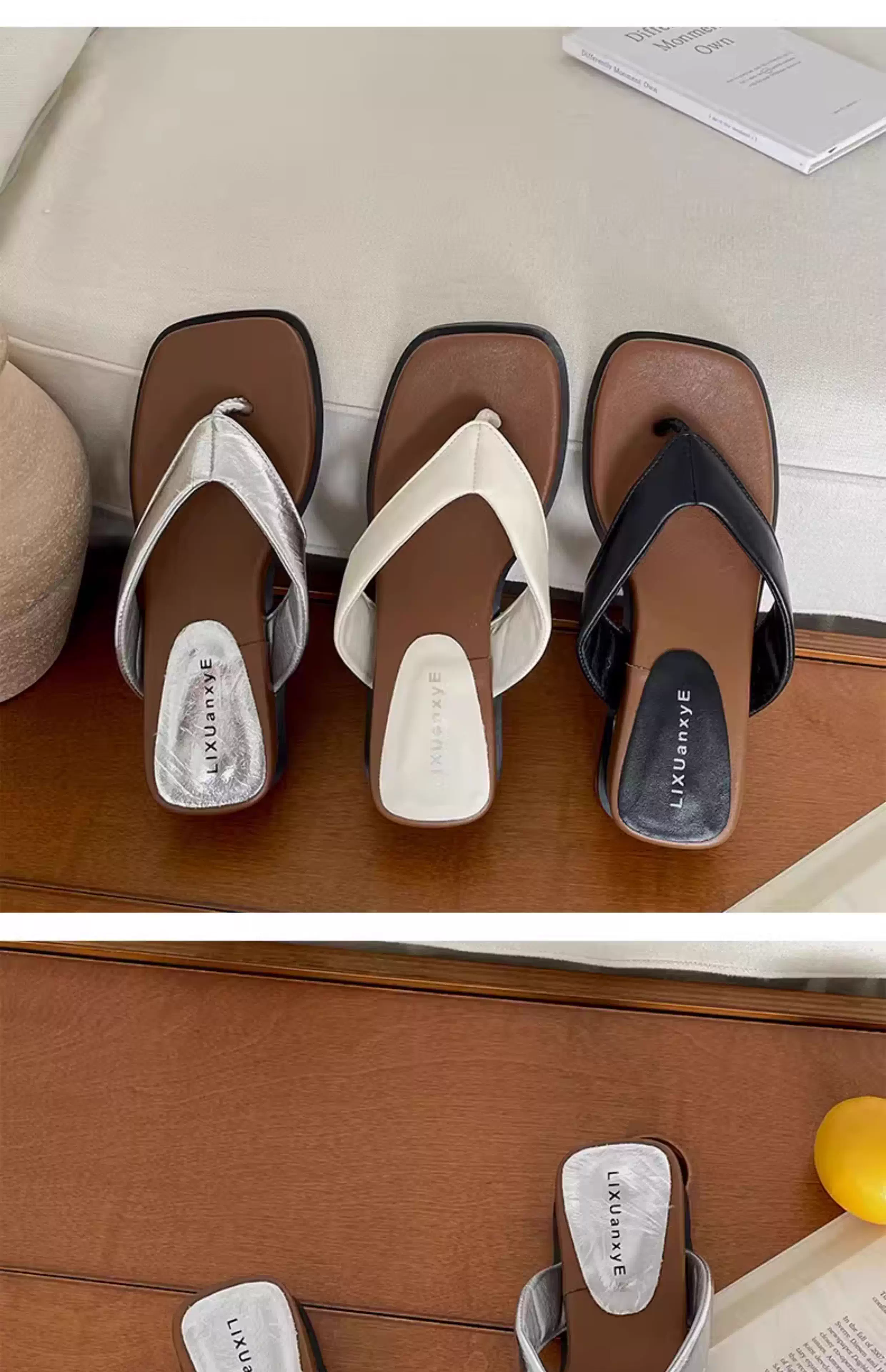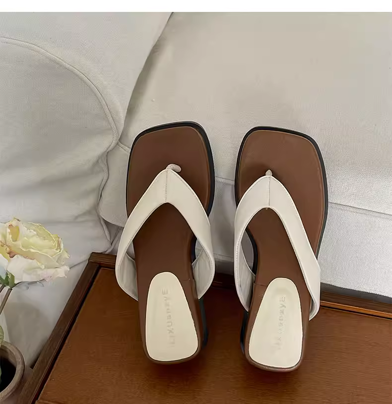 - Dép xỏ ngón đế xuồng bạc mũi vuông thời thượng dành cho nữ, đi ngoài trời mùa hè, mẫu mới 2025, chống trơn trượt, đi biển