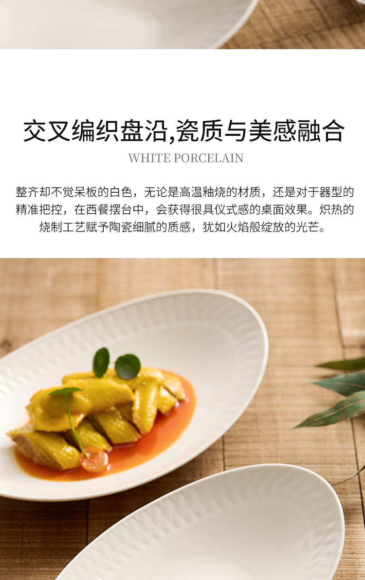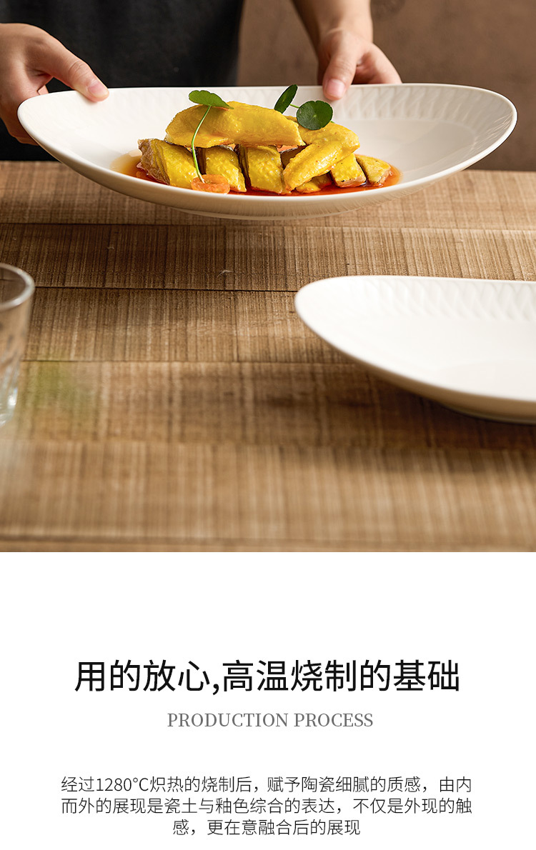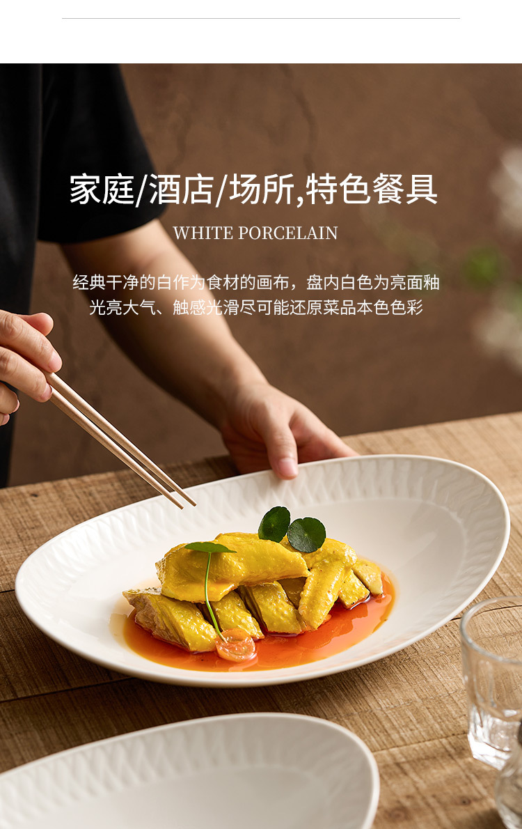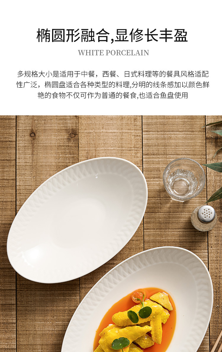 Đĩa ăn bằng gốm, đĩa cá, đĩa hấp cá gia dụng, bộ đồ ăn khách sạn cao cấp, đĩa thức ăn sáng tạo màu trắng tinh khiết, đĩa hình bầu dục, đĩa sâu