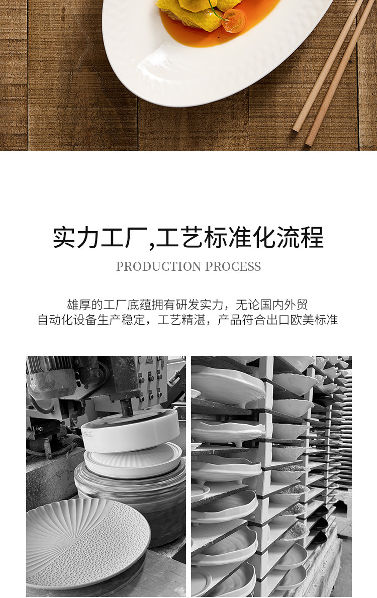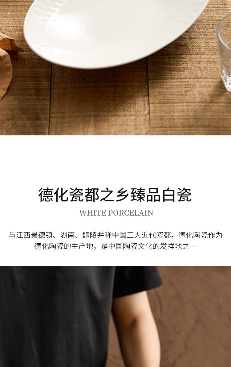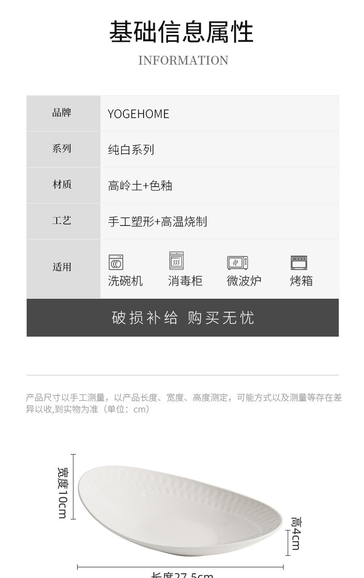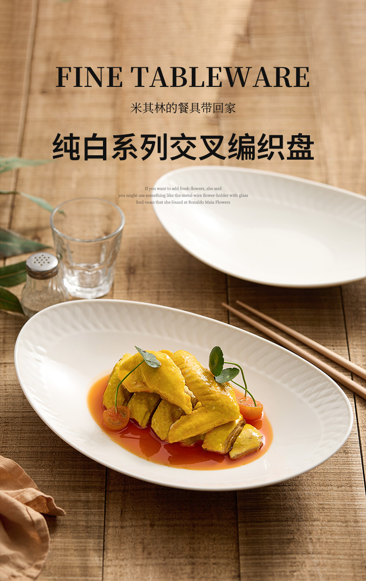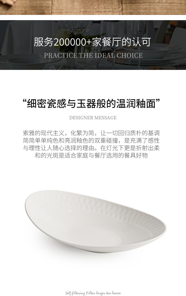 Đĩa ăn bằng gốm, đĩa cá, đĩa hấp cá gia dụng, bộ đồ ăn khách sạn cao cấp, đĩa thức ăn sáng tạo màu trắng tinh khiết, đĩa hình bầu dục, đĩa sâu