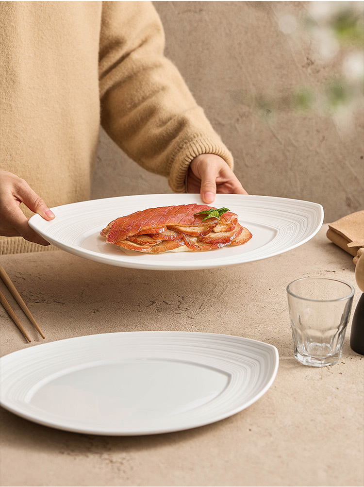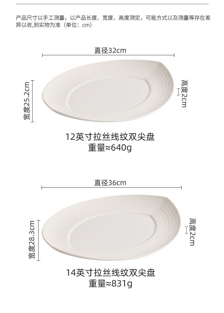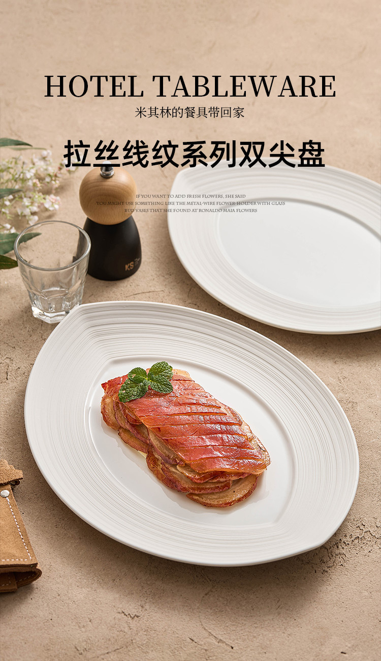 - Đĩa ăn bít tết gốm sứ sọc, đĩa cá, đĩa gia dụng, đĩa hấp cá, bộ đồ ăn khách sạn cao cấp hai đầu, đĩa bày lớn