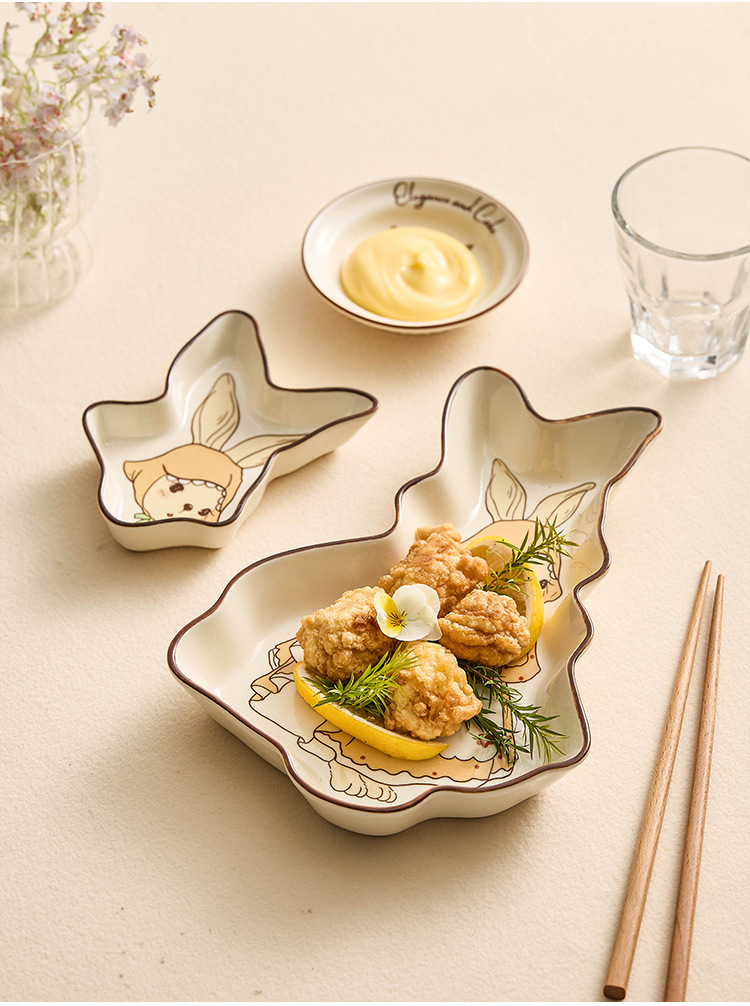 Đĩa ăn vặt gốm sứ Đĩa nước sốt Đĩa nhỏ Đĩa salad trái cây gia dụng Đĩa chấm tim Đĩa thỏ hoạt hình dễ thương sáng tạo