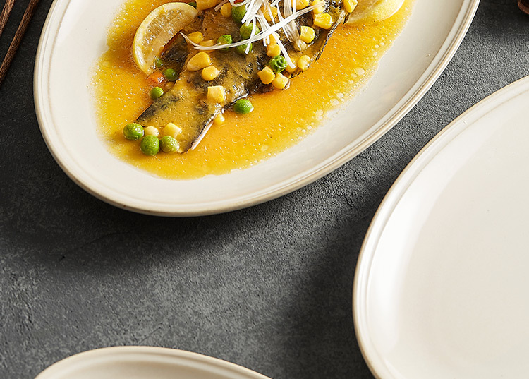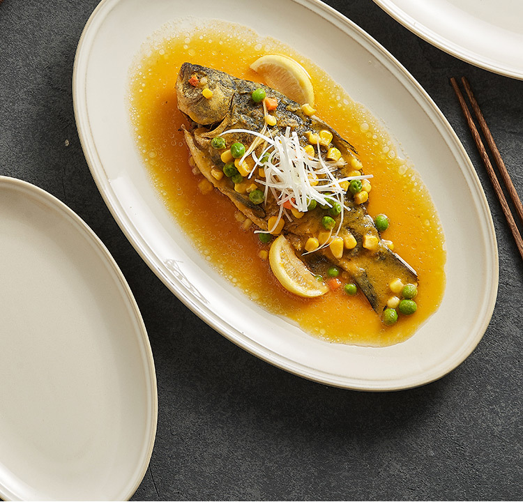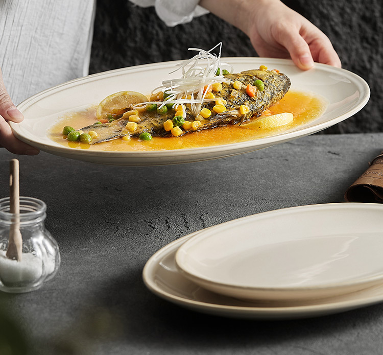- Đĩa cá gốm biến đổi Lò Vàng, đĩa Cá hấp gia dụng, đĩa ăn thương mại cao cấp, Đĩa ăn hình bầu dục, đĩa lớn