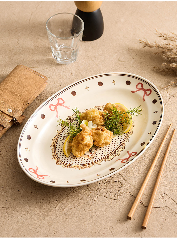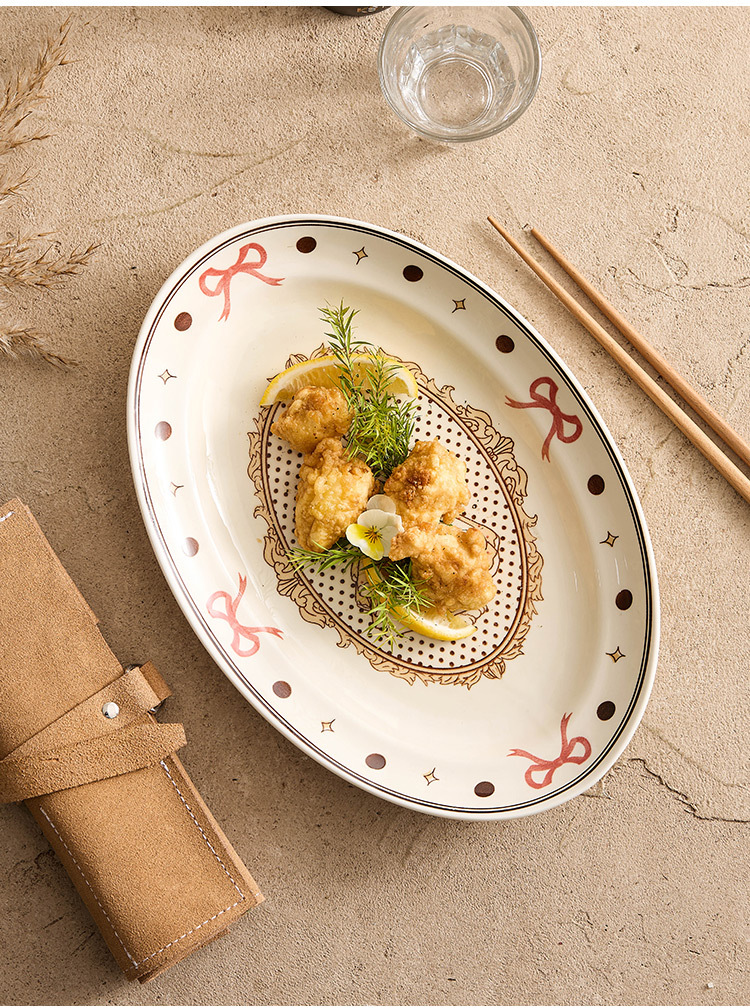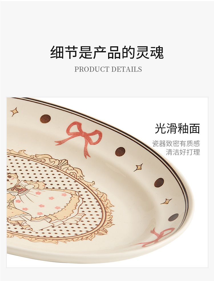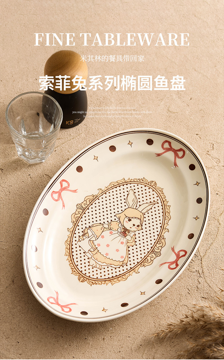 - Đĩa cá gốm tráng men màu Đĩa ăn gia dụng Đĩa hình bầu dục thỏ hoạt hình sáng tạo Đĩa cá chuyên dùng cho lò vi sóng