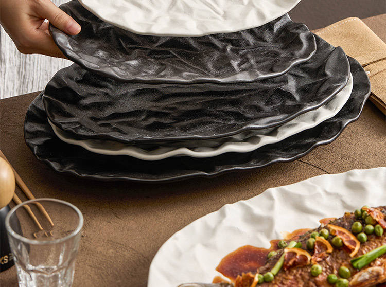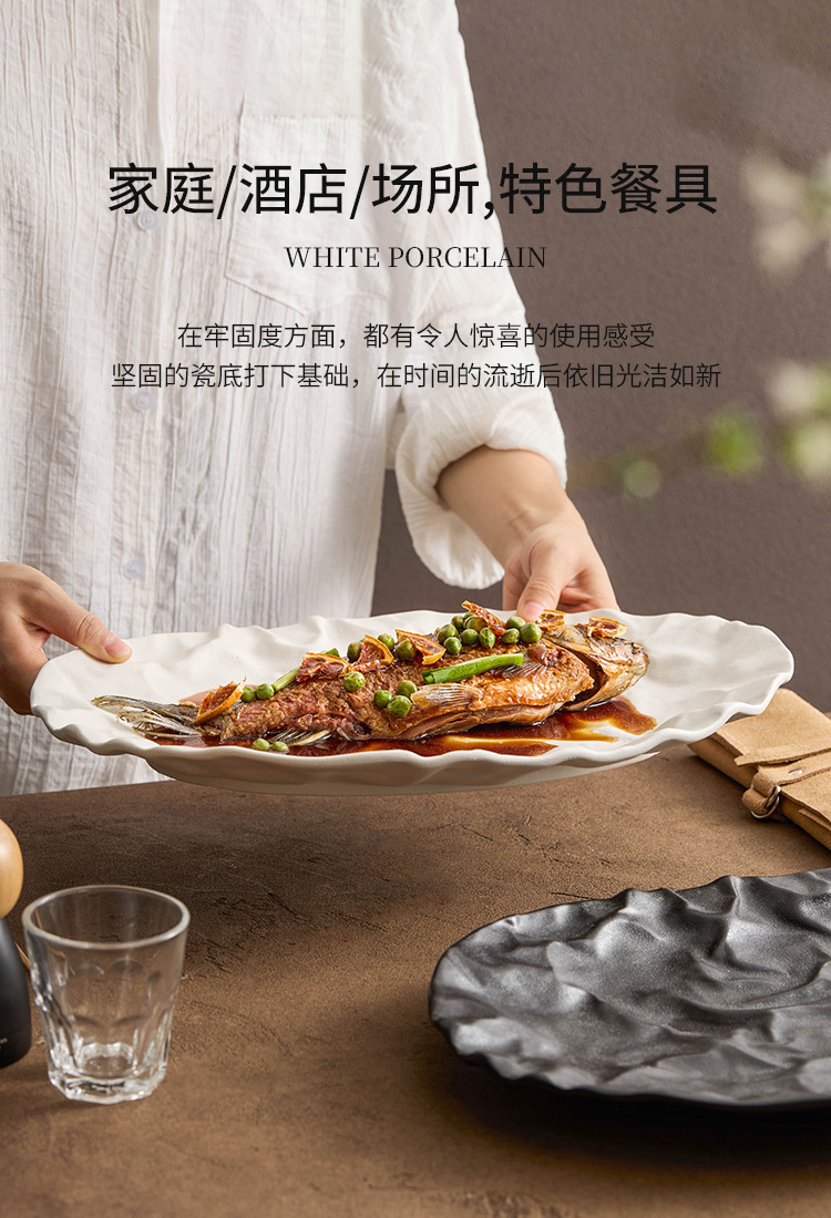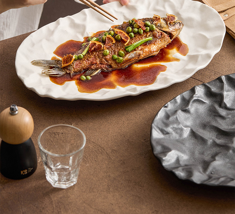 - Đĩa cá hoa văn vải Đĩa cá hấp chịu nhiệt độ cao Đĩa món ăn gia dụng Bộ đồ ăn khách sạn Đĩa ăn kết cấu mờ cao cấp Đĩa hình bầu dục