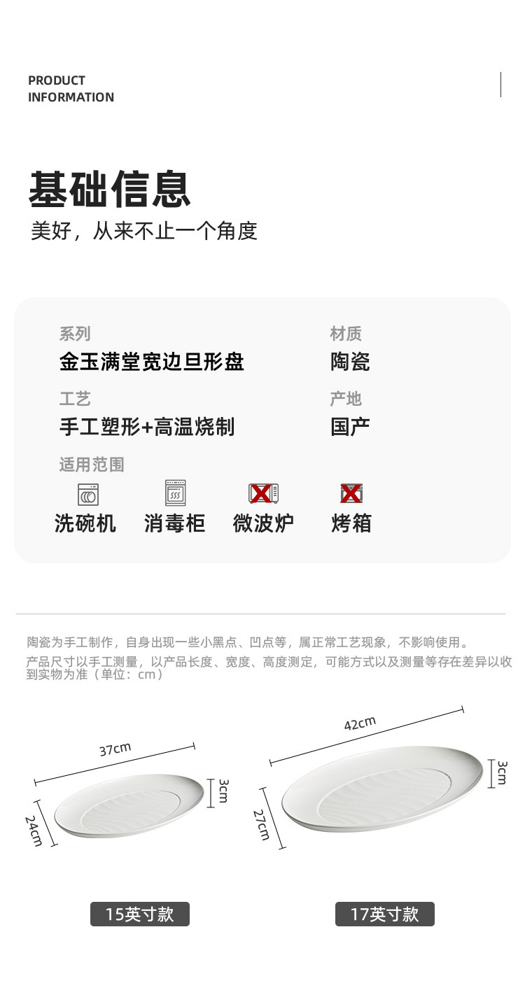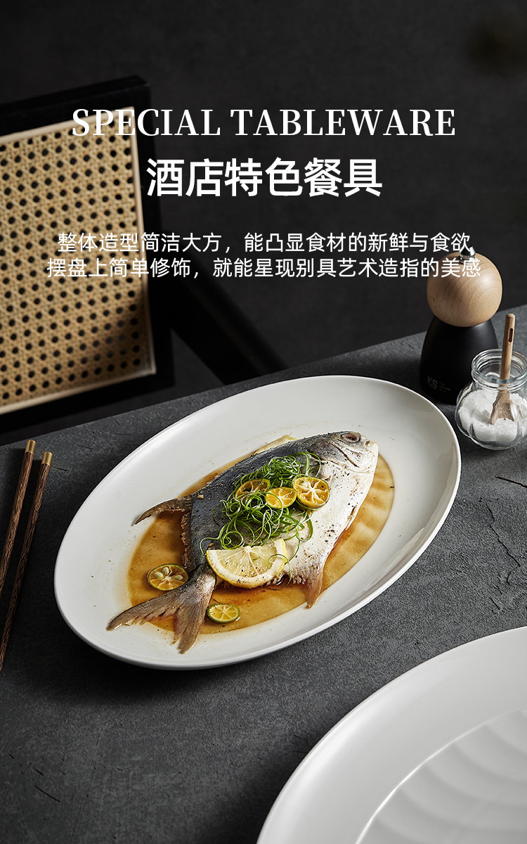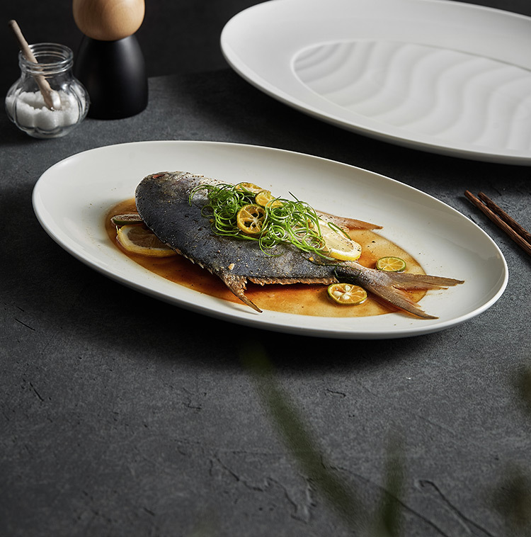- Đĩa cá viền rộng, đĩa Cá hấp cỡ lớn gia dụng, đĩa ăn cá cao cấp, đĩa bày đĩa gốm hình bầu dục kiểu Nhật