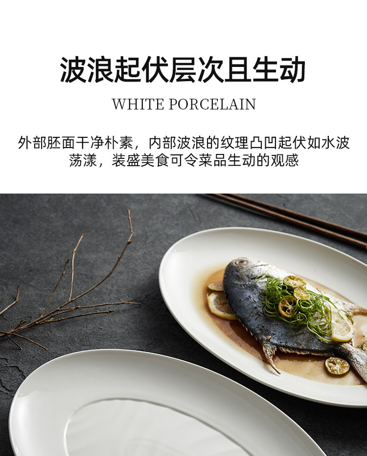 Đĩa cá viền rộng, đĩa Cá hấp cỡ lớn gia dụng, đĩa ăn cá cao cấp, đĩa bày đĩa gốm hình bầu dục kiểu Nhật