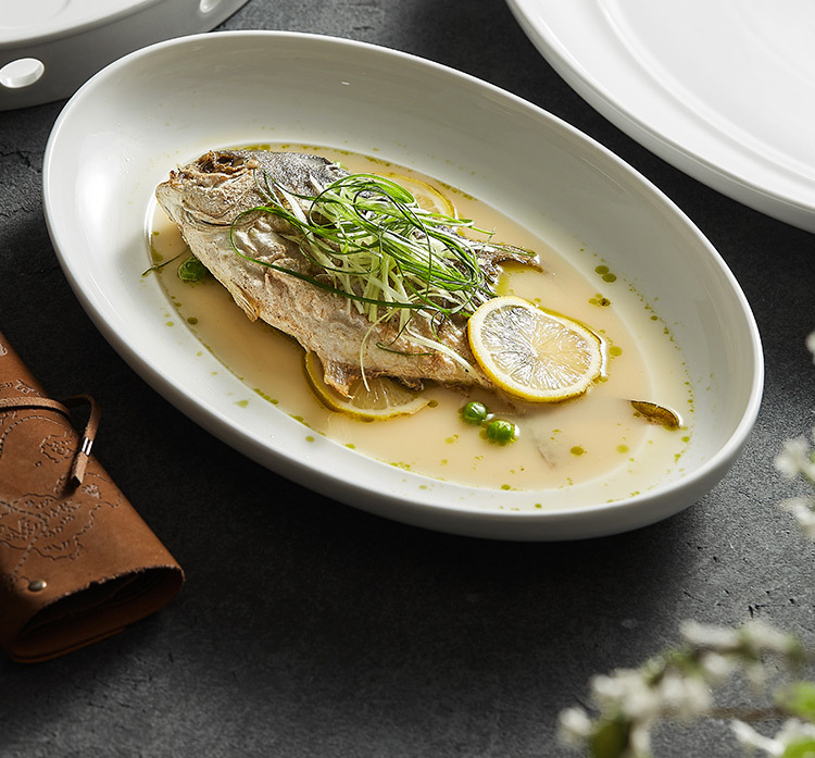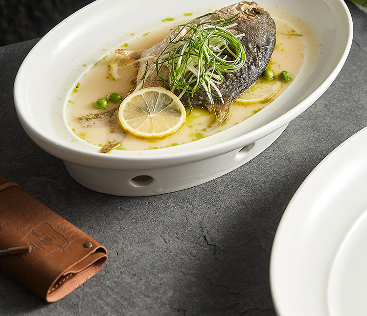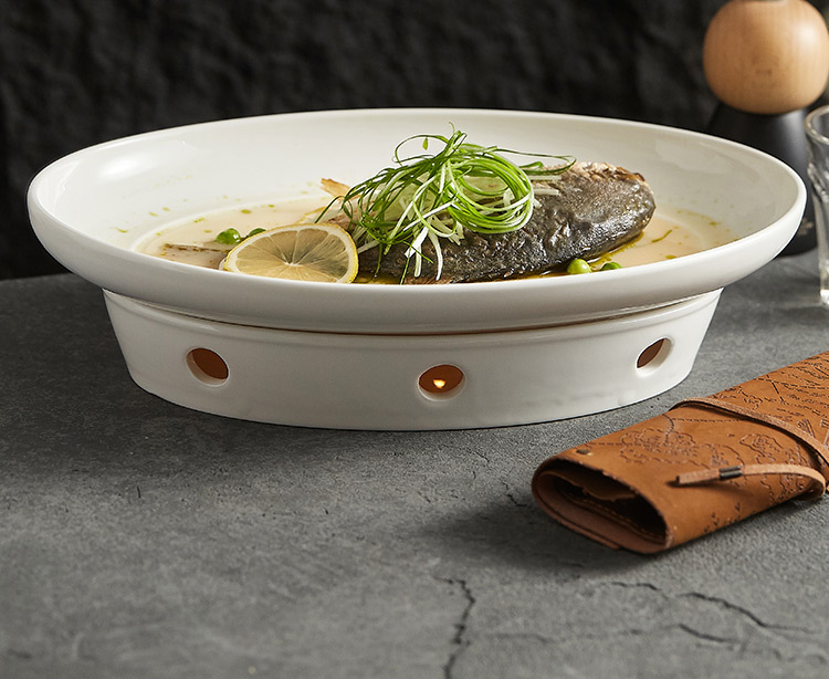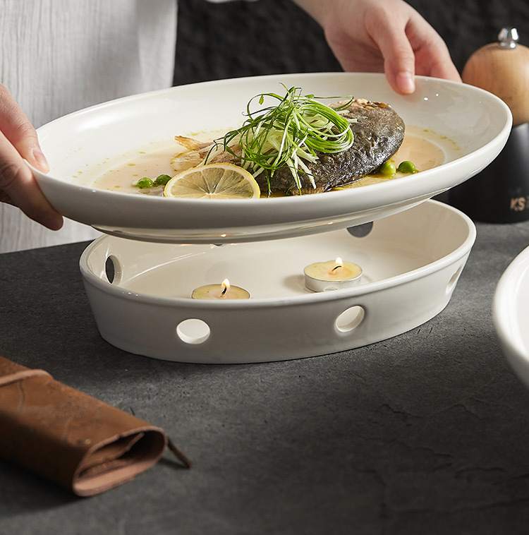 - Đĩa cá với bếp nến sưởi ấm nồi khô khay bếp cách nhiệt nhà hàng cao cấp khách sạn Bộ đồ ăn đặc biệt đĩa gốm thương mại