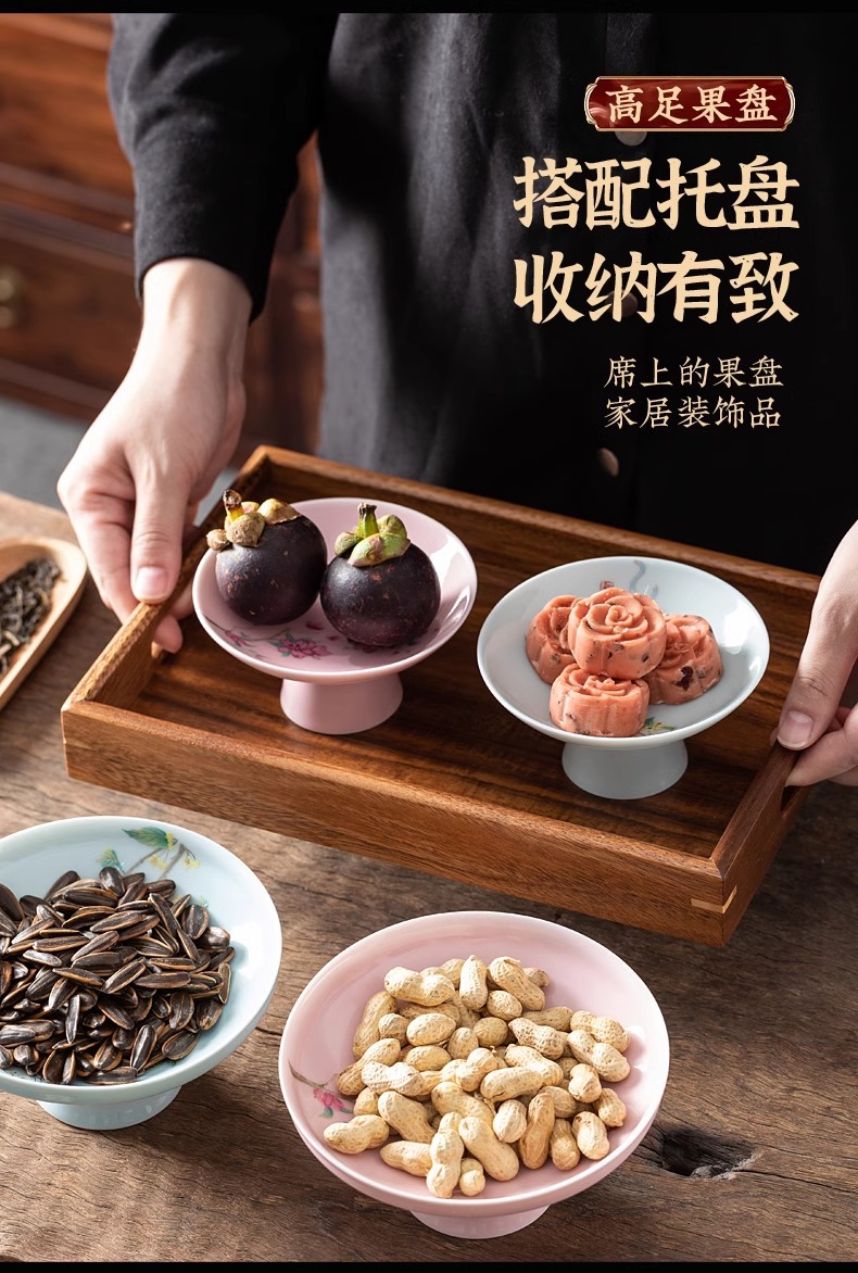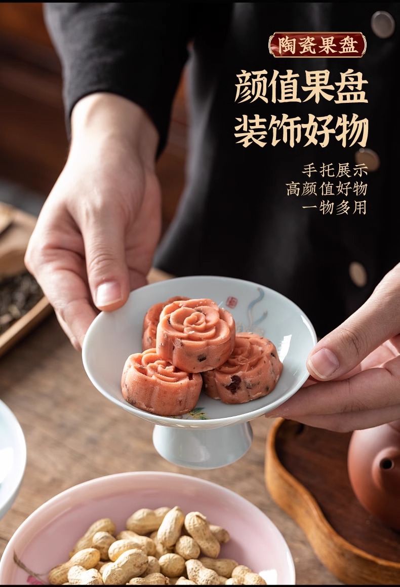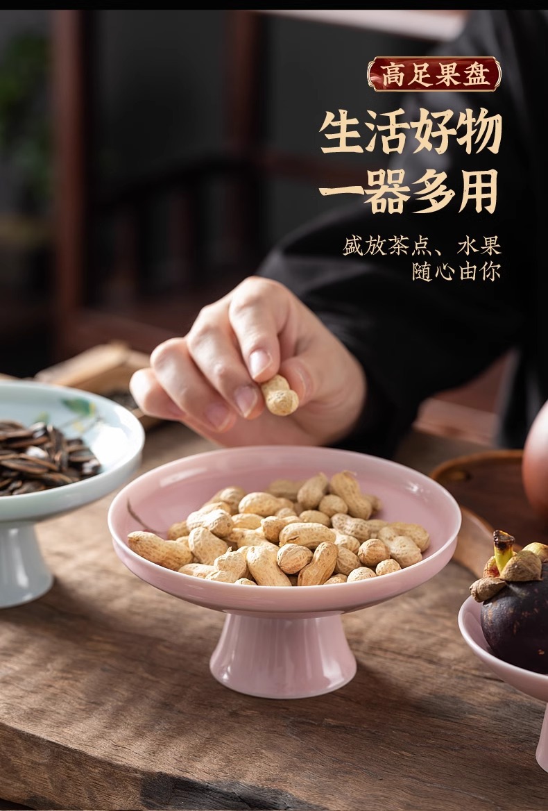 - Đĩa cao chân gốm sứ kiểu Trung Quốc, đĩa giải khát chân cao cổ điển, đĩa chấm bi gia dụng, đĩa phục vụ hoa quả gia dụng, Đĩa hoa quả khô quanh bếp