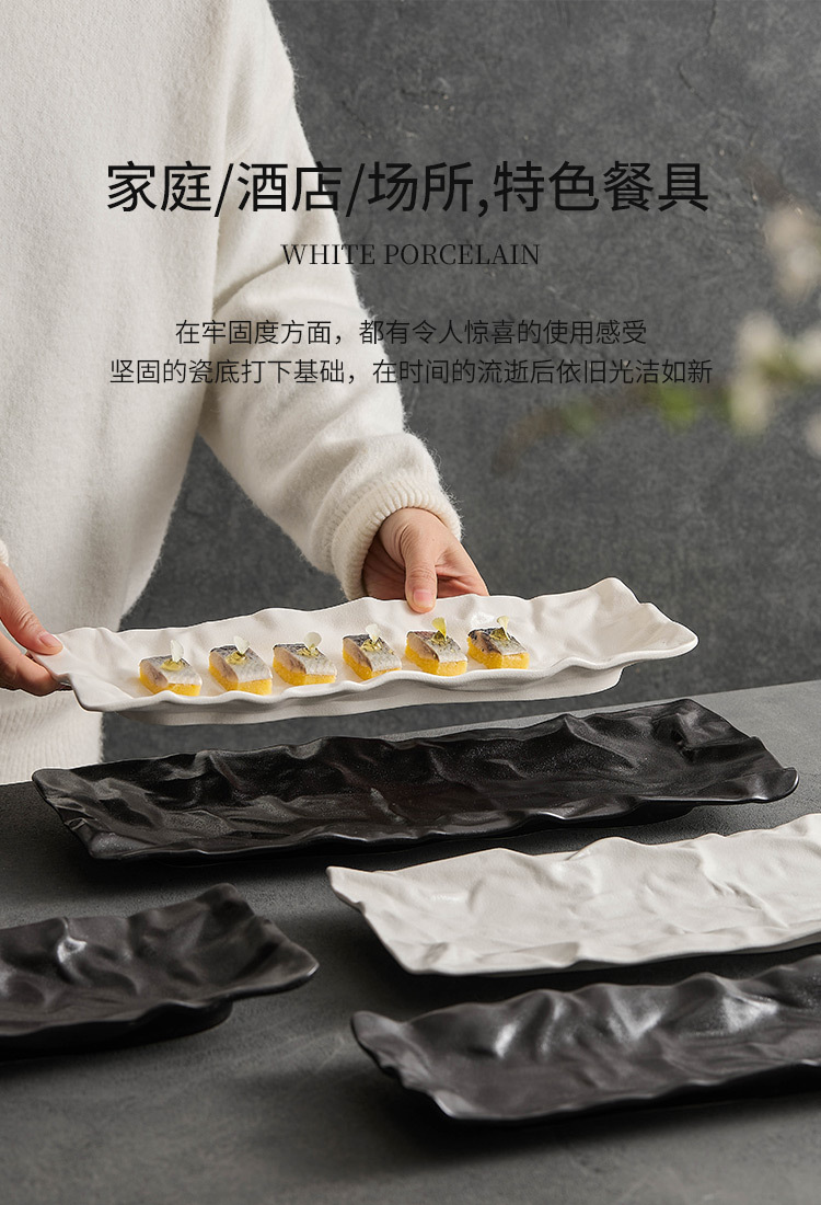 - Đĩa chuyên dùng cho sushi gốm sứ vải, đĩa gia dụng, bộ đồ ăn nhà hàng khách sạn sáng tạo, đĩa bày sashimi kết cấu mờ