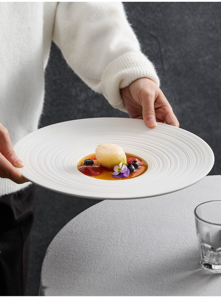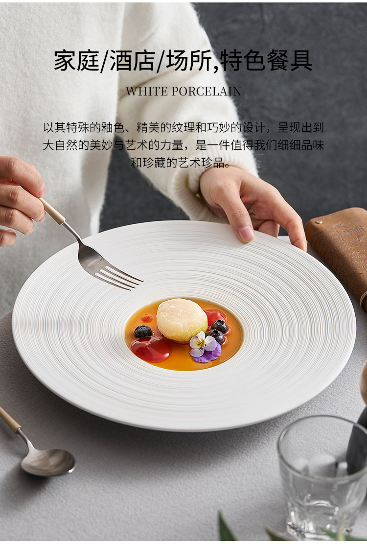 Đĩa đồ ăn phương Tây bằng gốm chải, đĩa súp, đĩa gia dụng, bộ đồ ăn khách sạn cao cấp, đĩa nghệ thuật, đĩa tròn, đĩa đặc sản