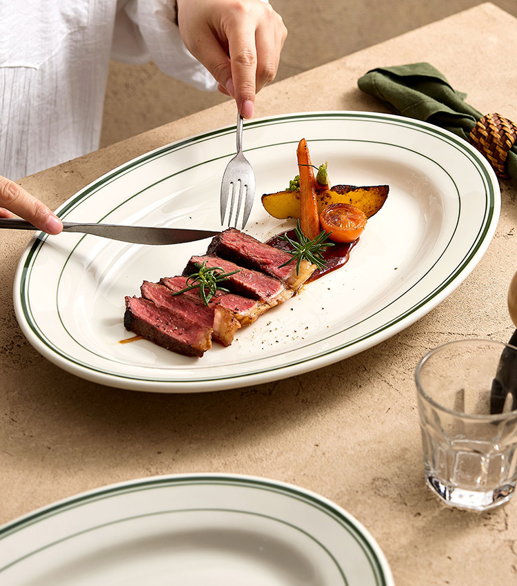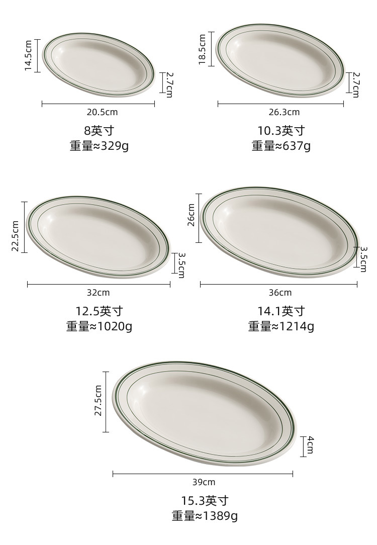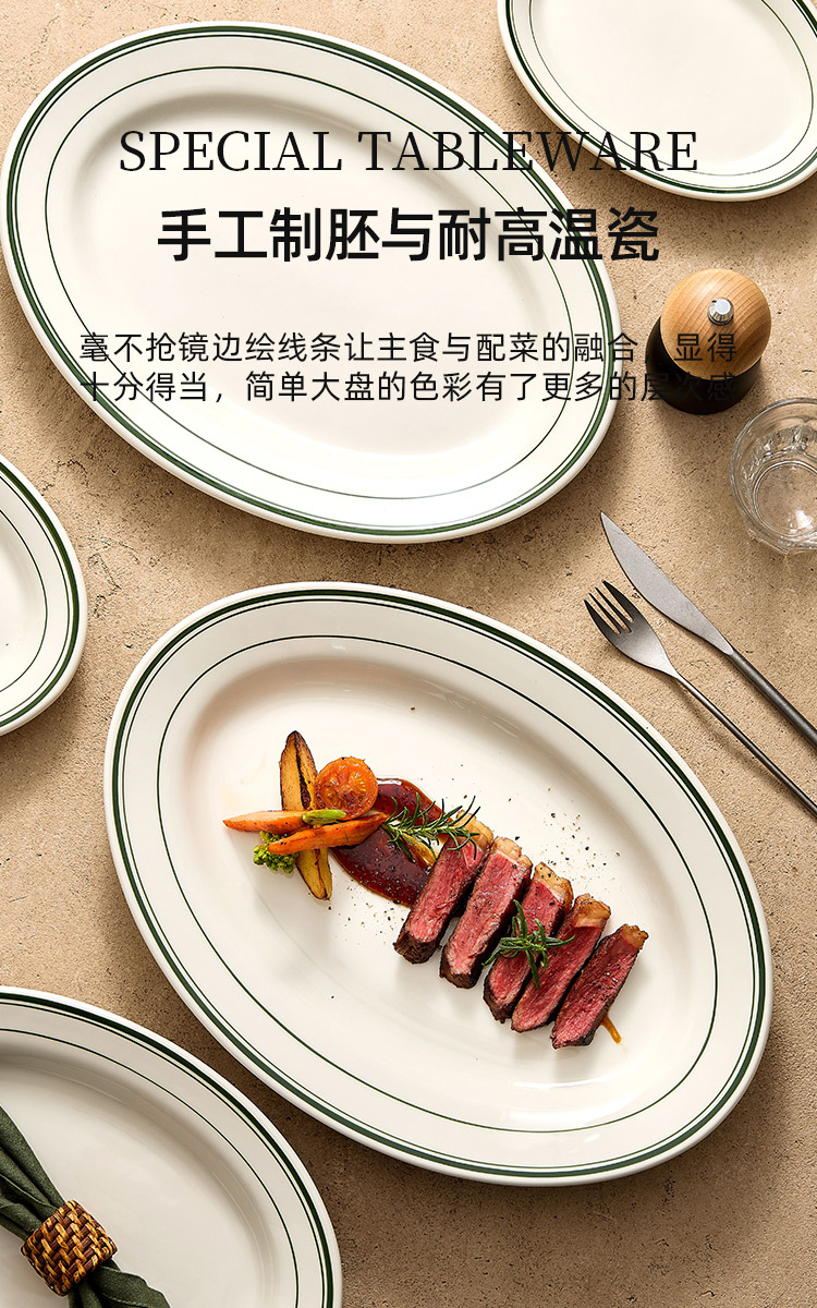 Đĩa gốm chịu nhiệt cao Deshun của Mỹ dùng để hấp khô các món ăn, đĩa nướng thịt bò đặc biệt, đĩa cá hình bầu dục, đĩa thịt bò