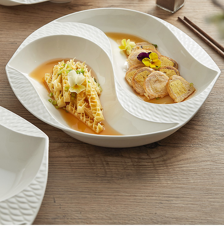 - Đĩa gốm, đĩa đựng thức ăn gia dụng, bộ đồ ăn màu trắng không đều, sáng tạo, Quan Niệm nghệ thuật vịt quan, đĩa đựng thức ăn nguội