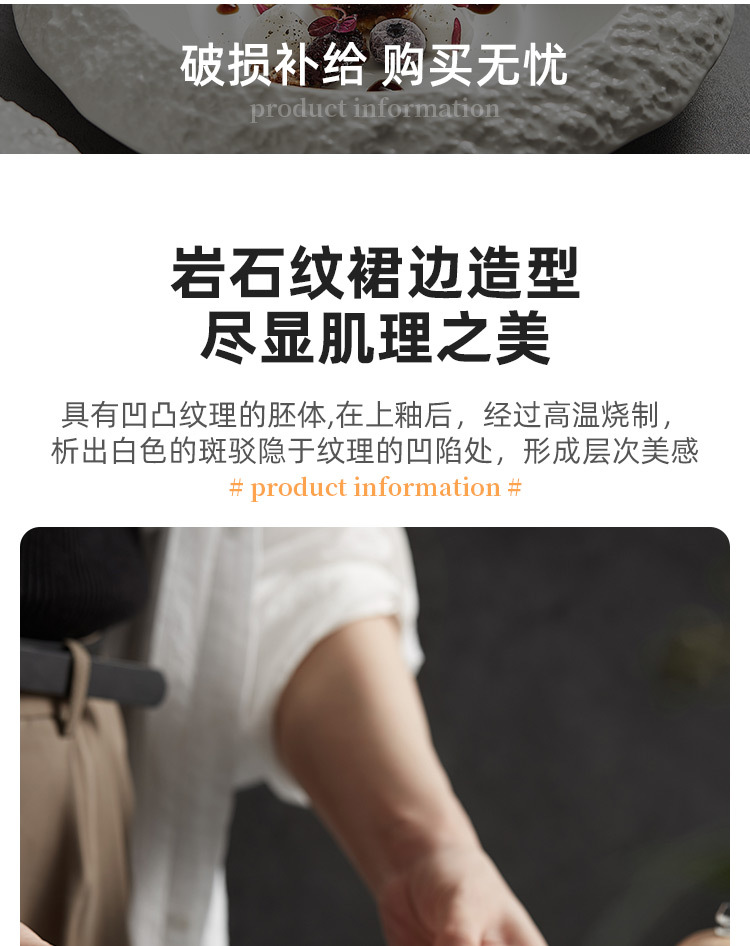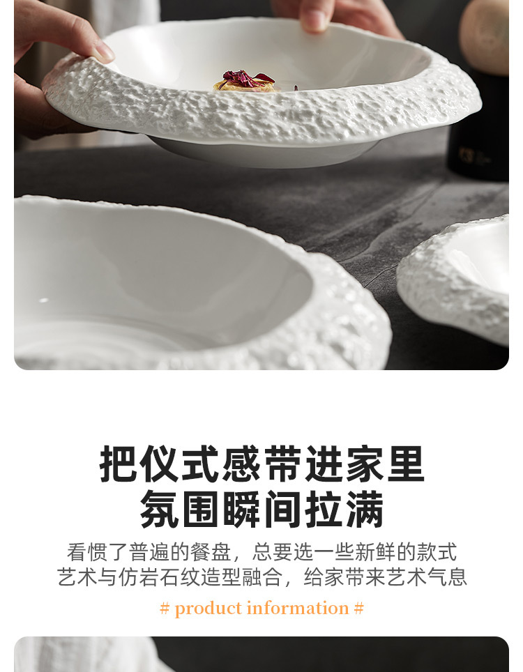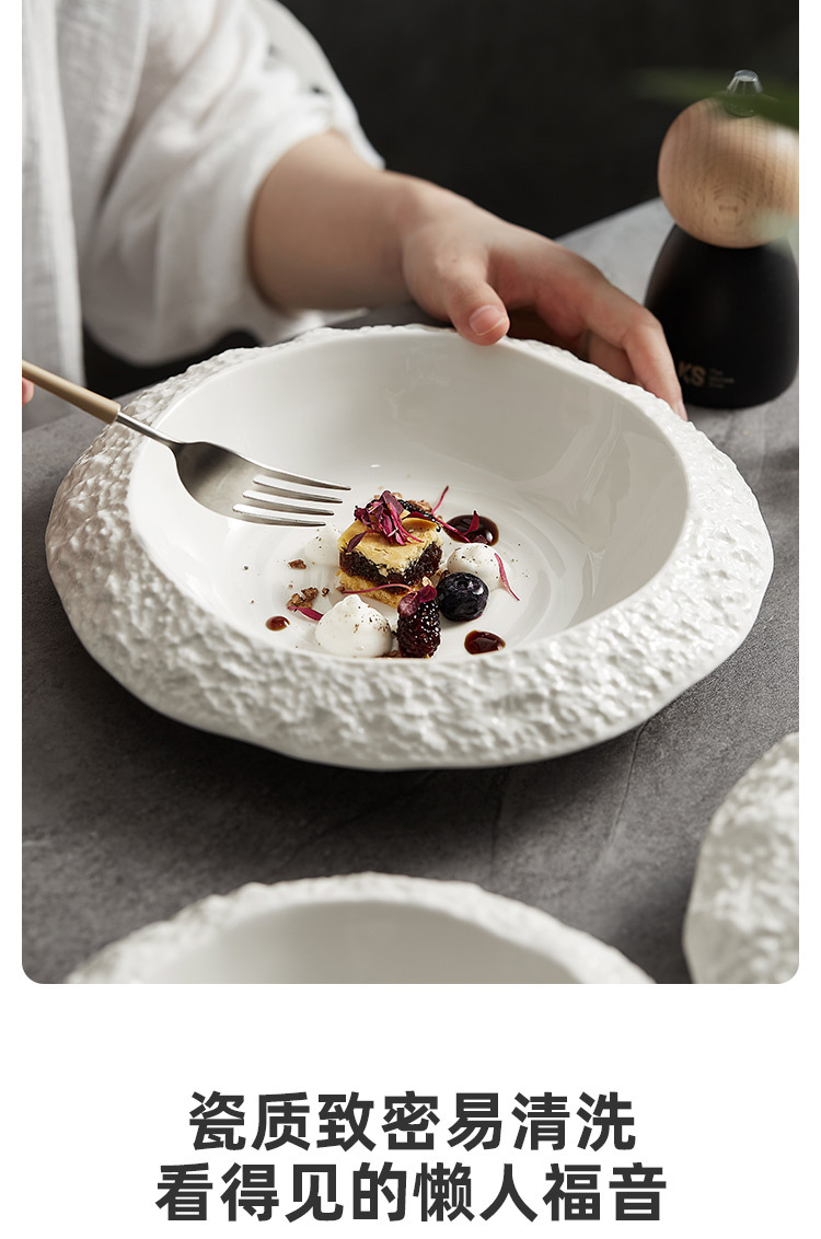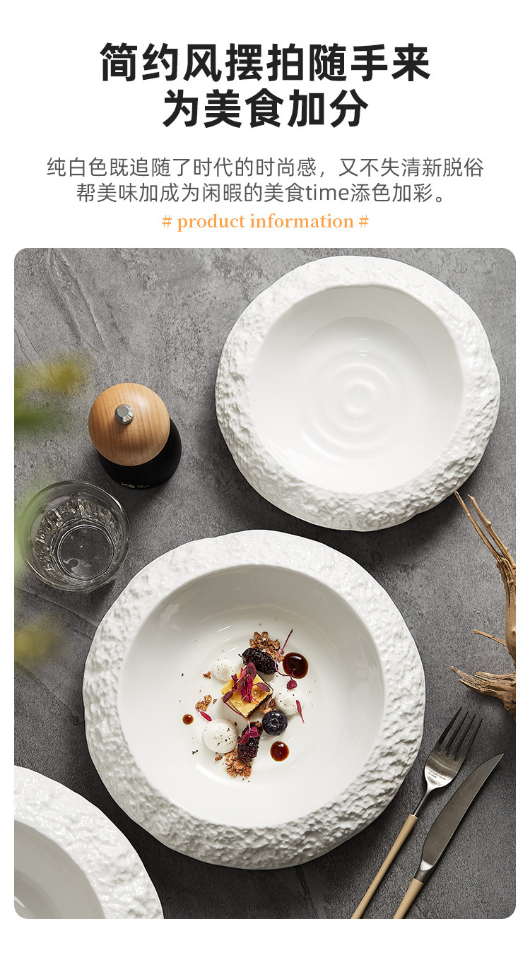 - Đĩa gốm hoa văn đá Đĩa sâu gia dụng Đĩa thức ăn sáng tạo nhà hàng khách sạn Đĩa cơm trắng cao cấp Đĩa canh